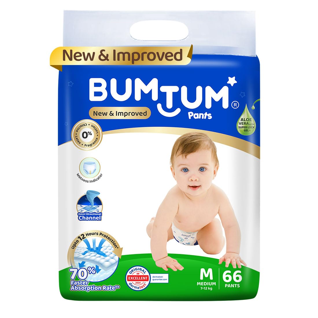 Bumtum Baby Diaper Pants, Medium Size, 66 Count, Double Layer Leakage Protection Infused With Aloe Vera, Cottony Soft High Absorb Technology (Pack of 1)