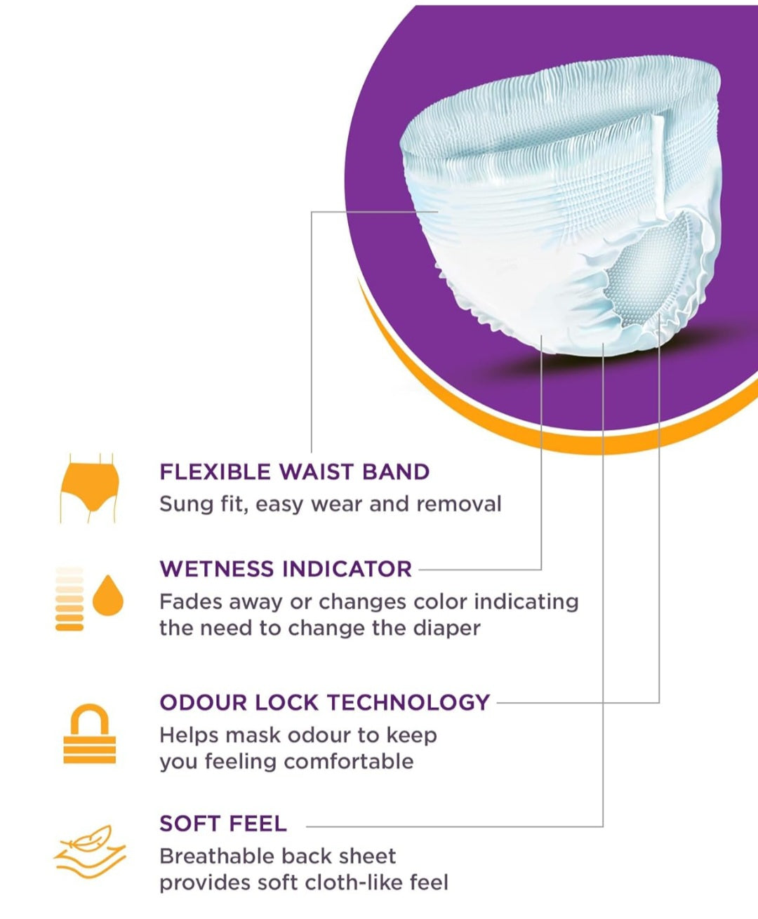 - Comfort First: As we know how important comfort is for our customers so we went above and beyond to design our adult incontinence pants with only the softest materials. We want our customers to feel their best when wearing our products and we hope that these extra steps will show just how much we car