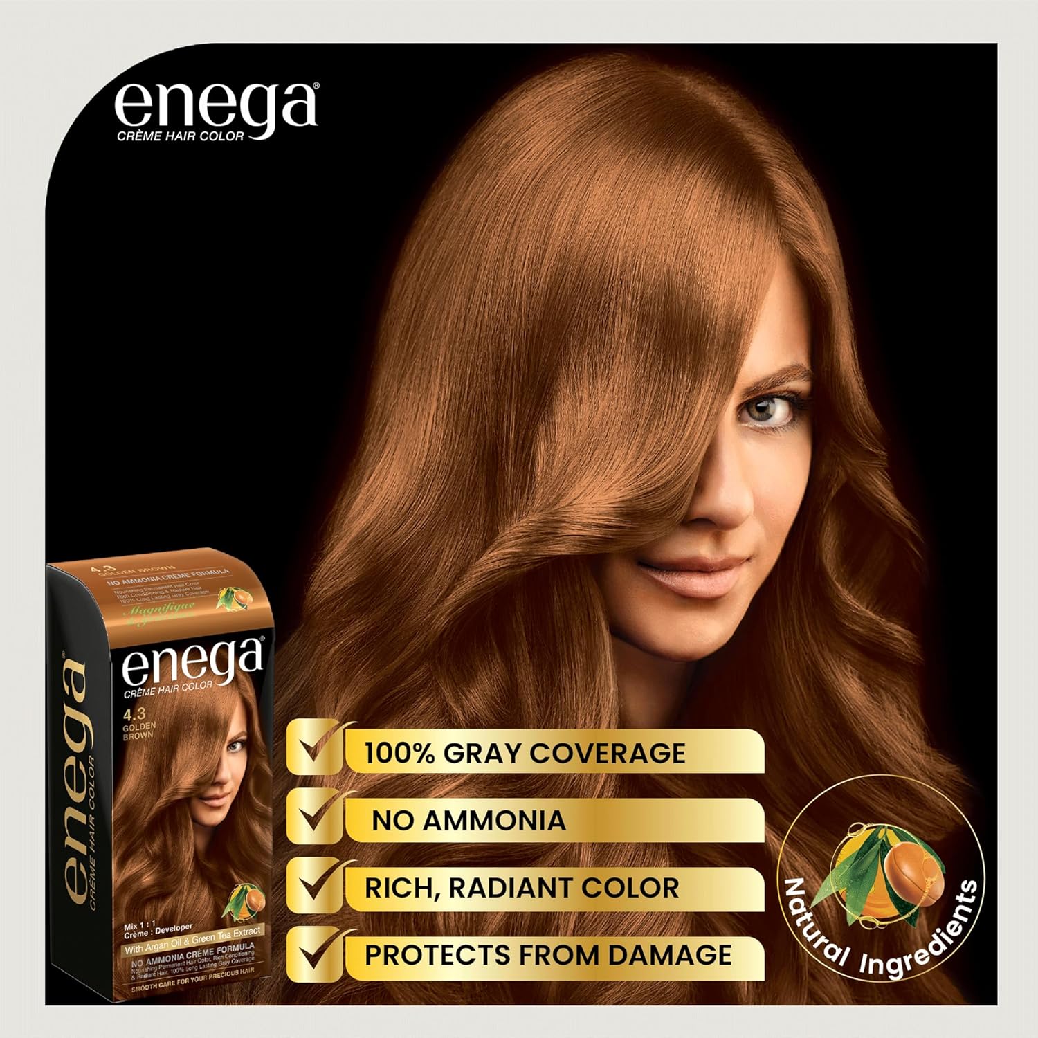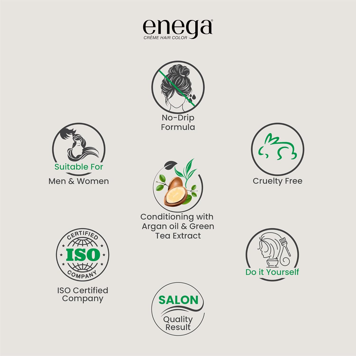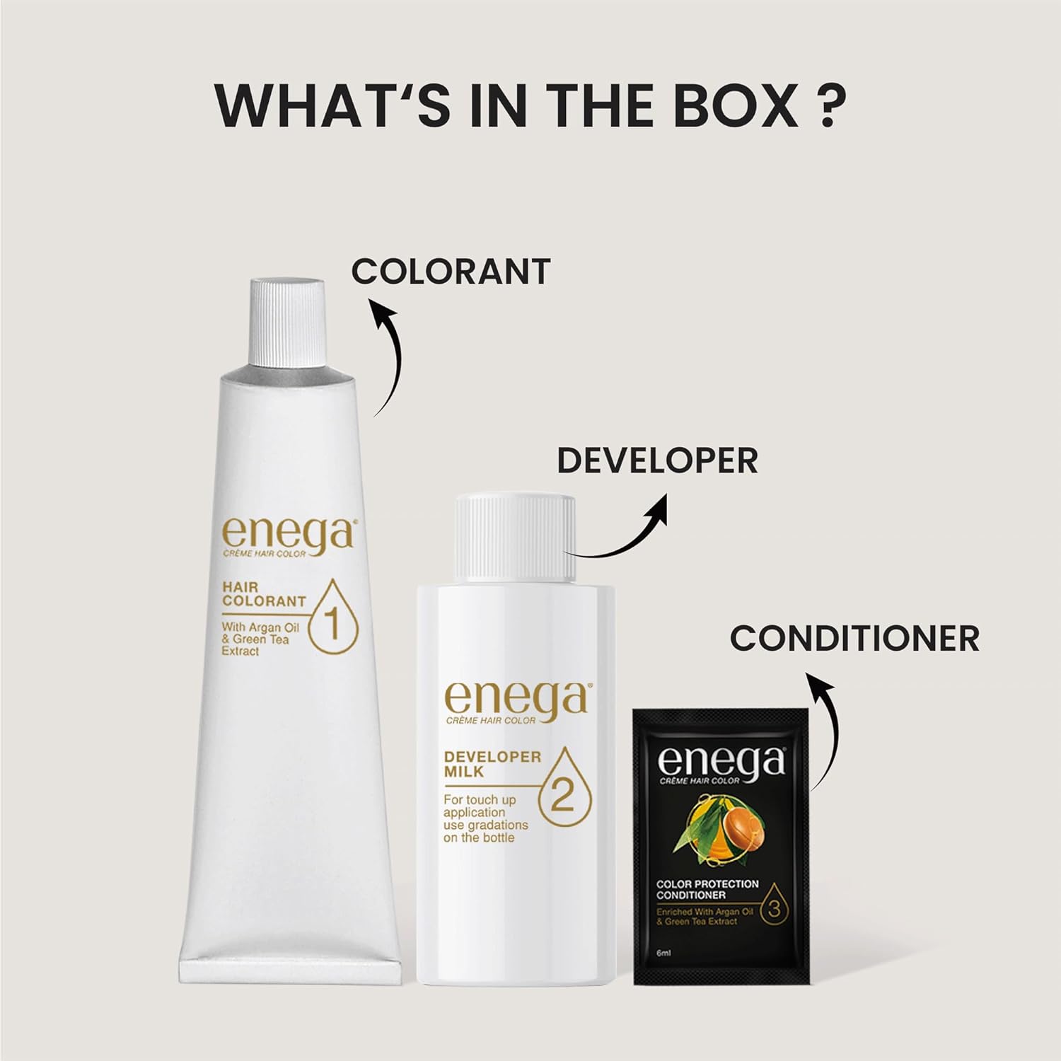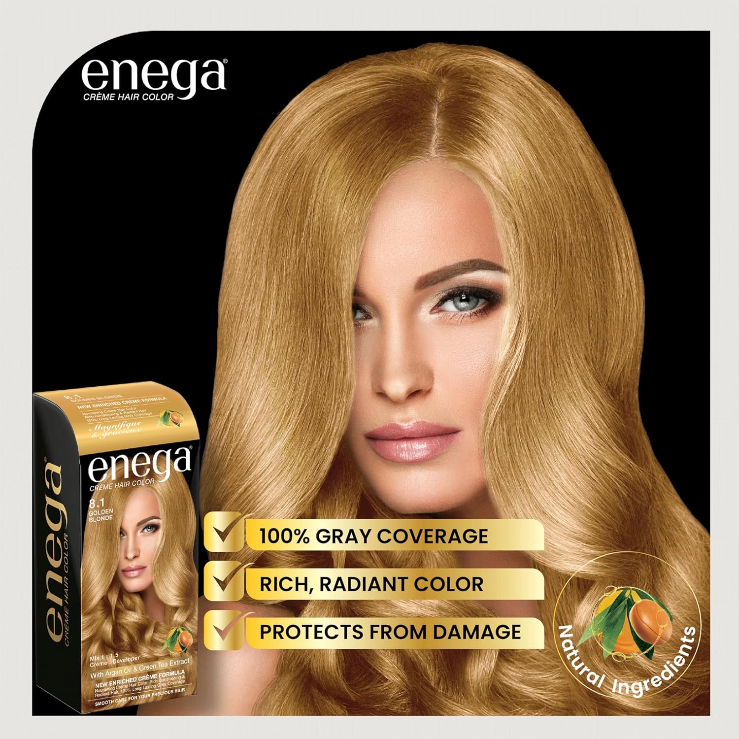 Enega No Ammonia Grey Coverage Long Lasting Creme Hair Color with Argan Oil & Green Tea Extract - Pack of 1(150 ML) (Golden Blonde)