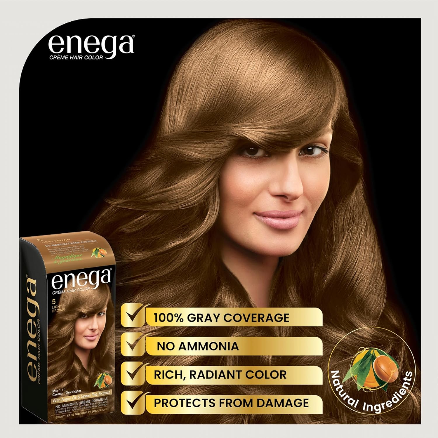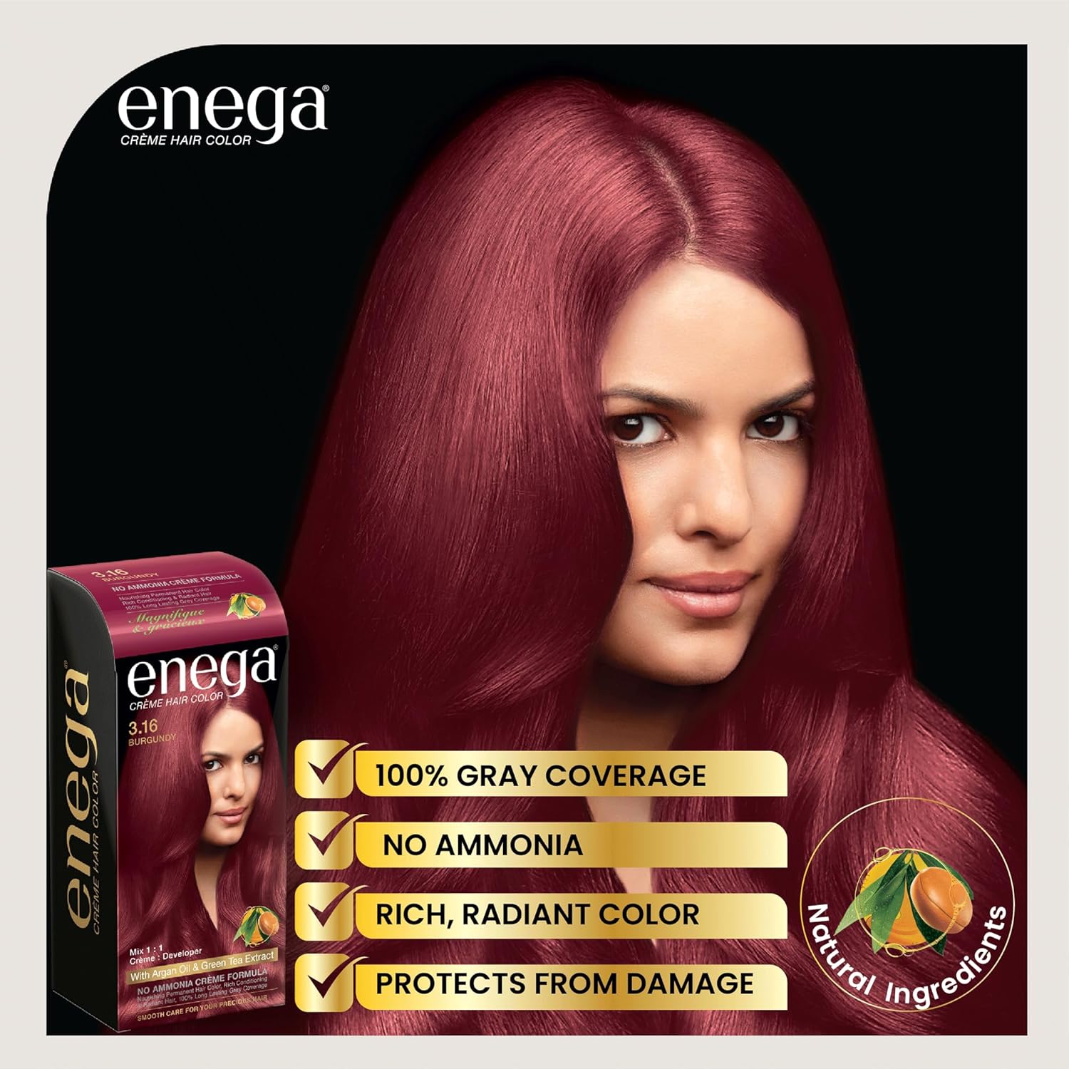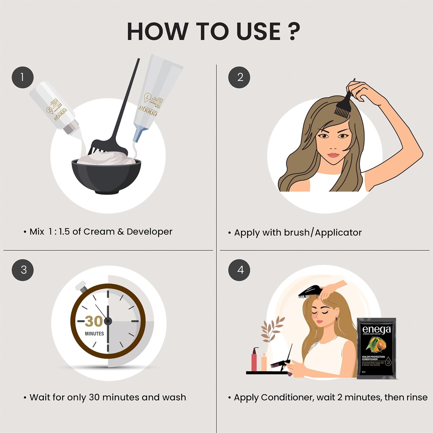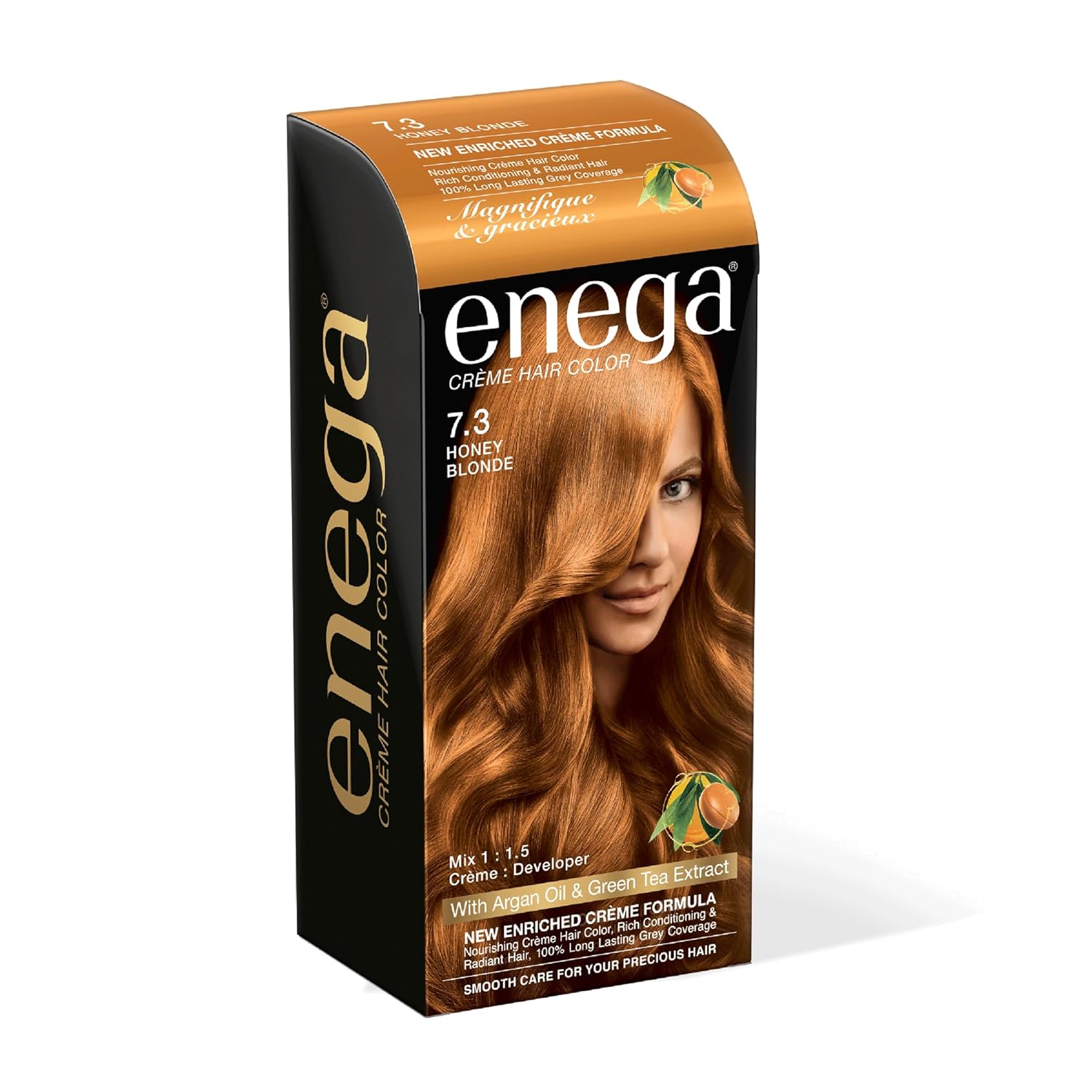 Enega No Ammonia Grey Coverage Long Lasting Creme Hair Color with Argan Oil & Green Tea Extract - Pack of 1(150 ML) (Golden Blonde)