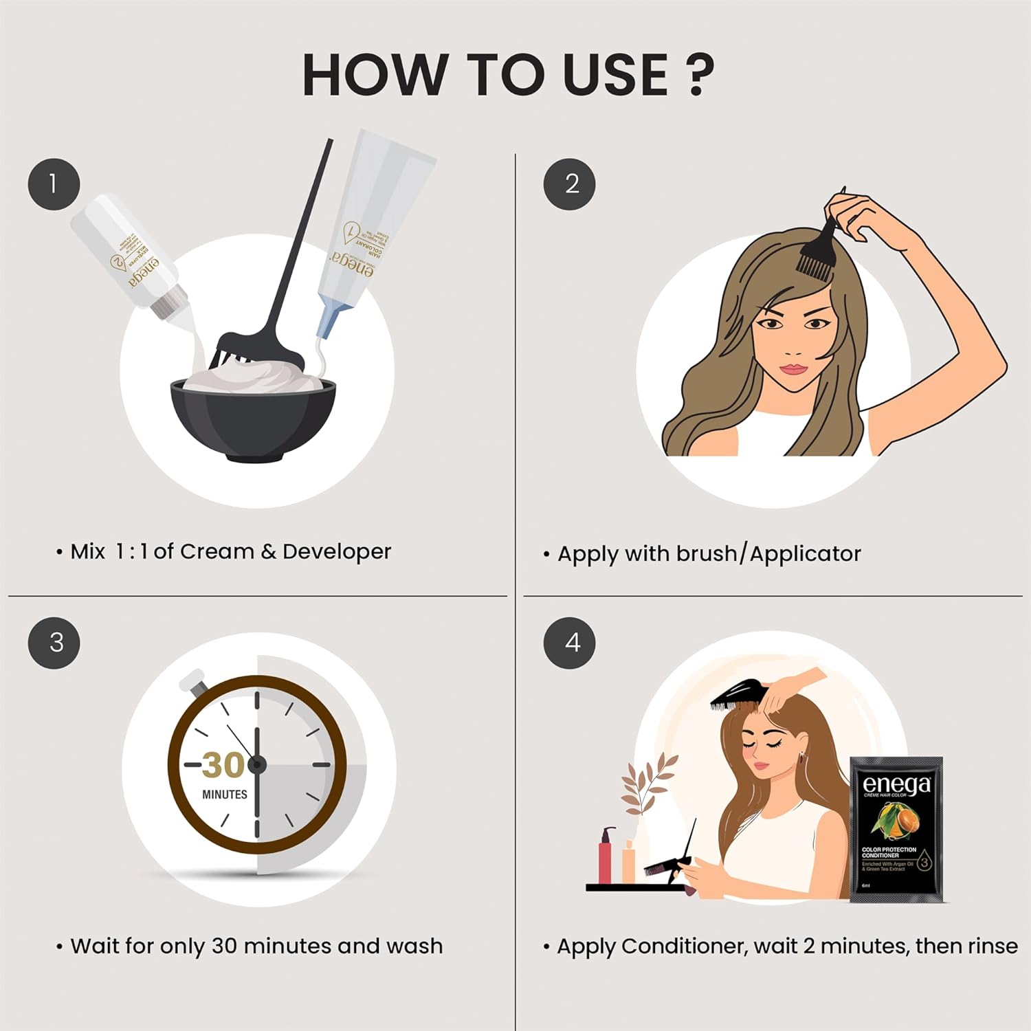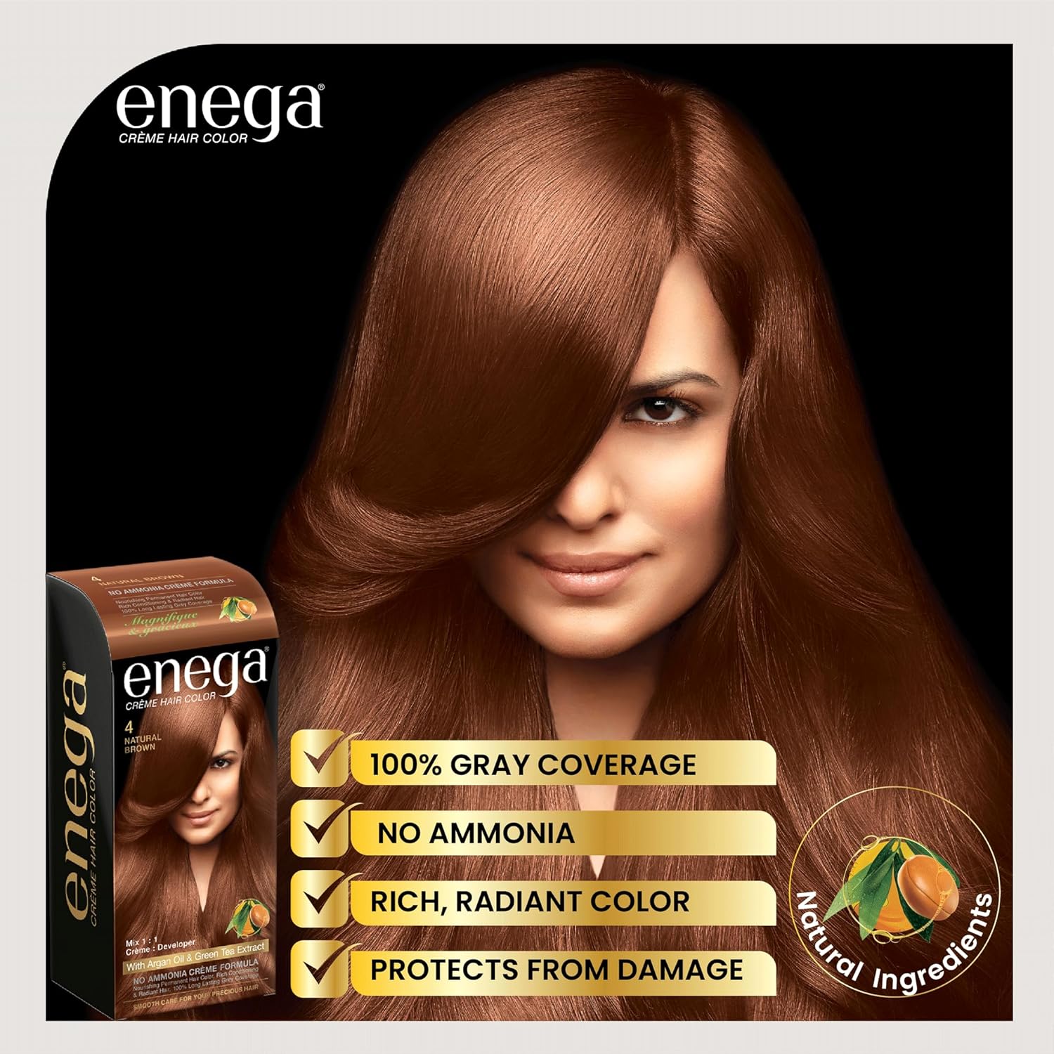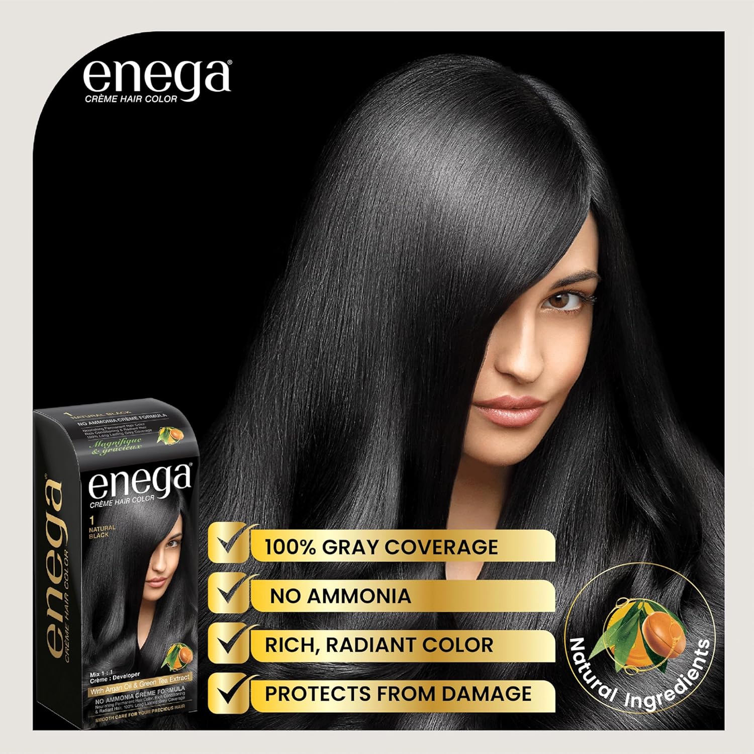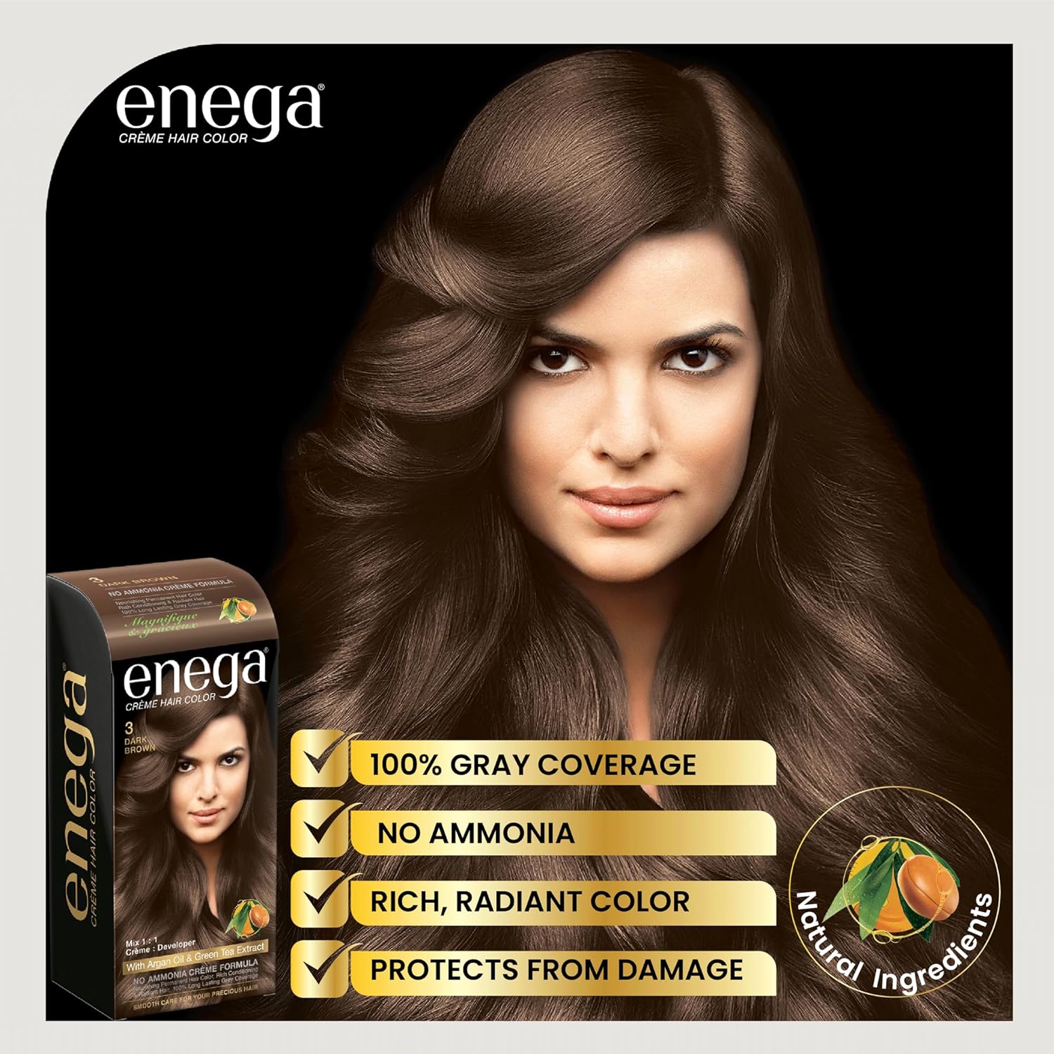 Enega No Ammonia Grey Coverage Long Lasting Creme Hair Color with Argan Oil & Green Tea Extract - Pack of 1(150 ML) (Golden Blonde)