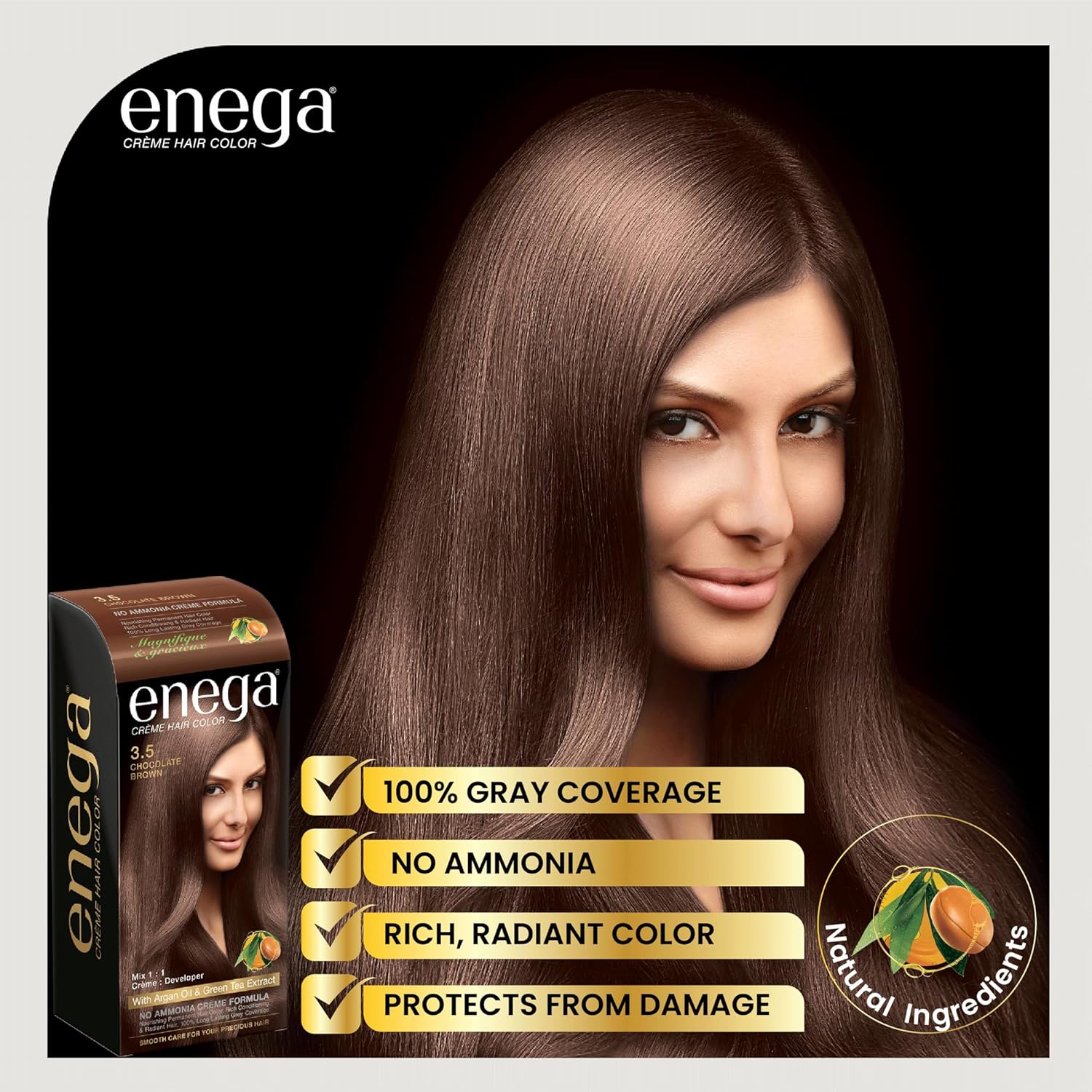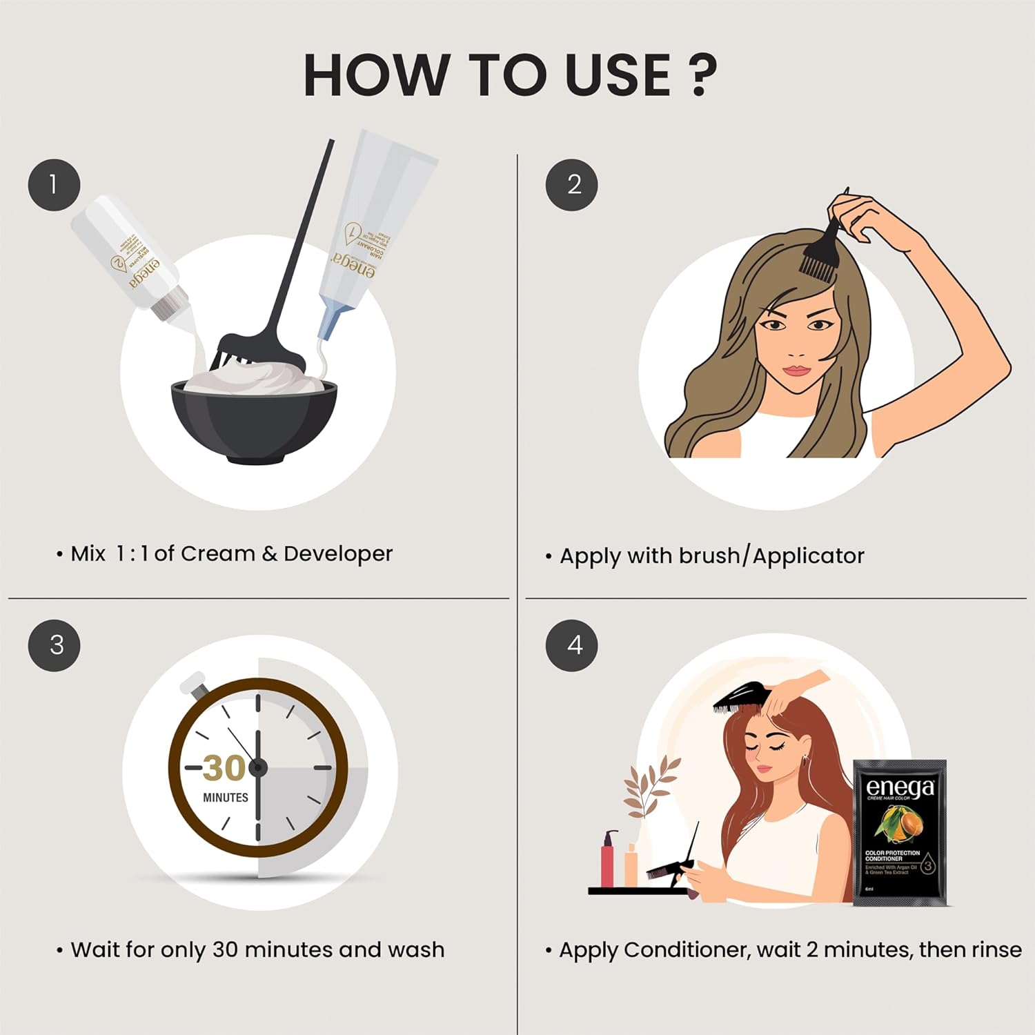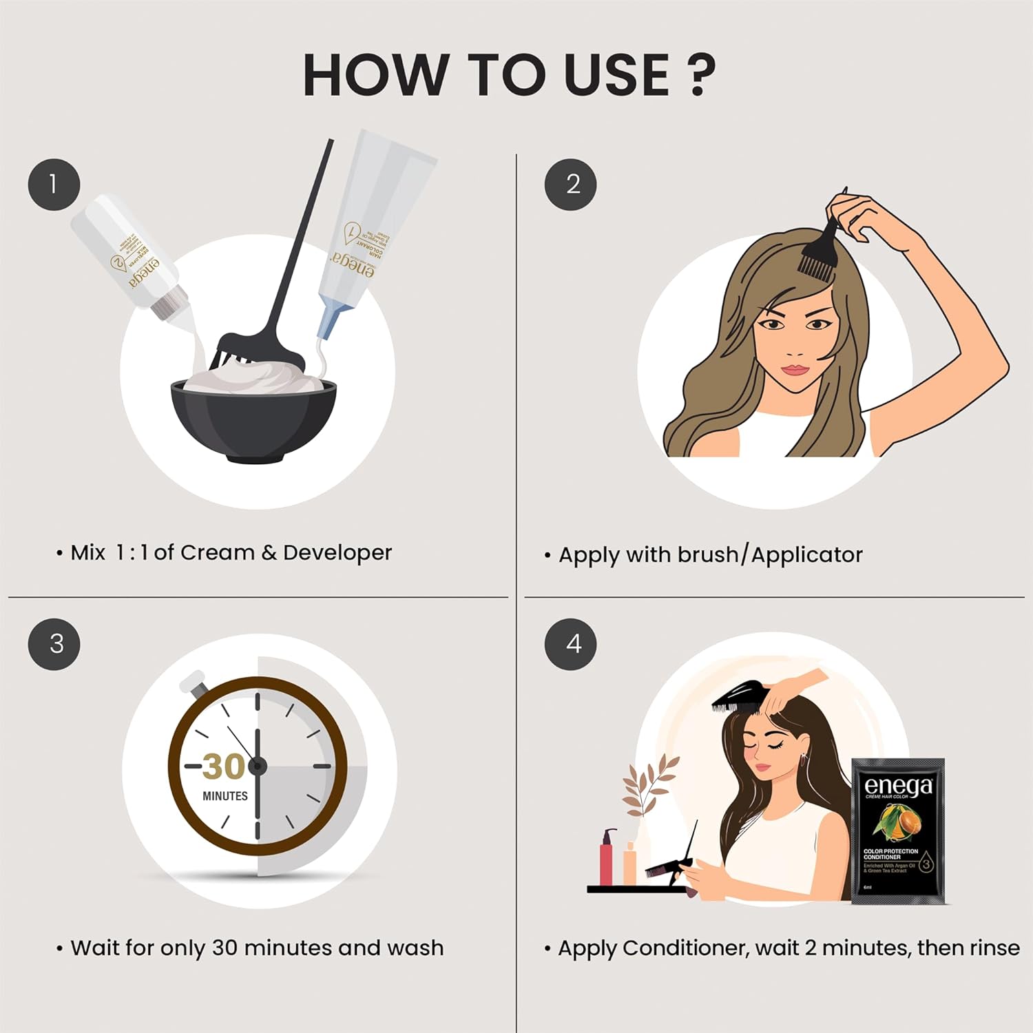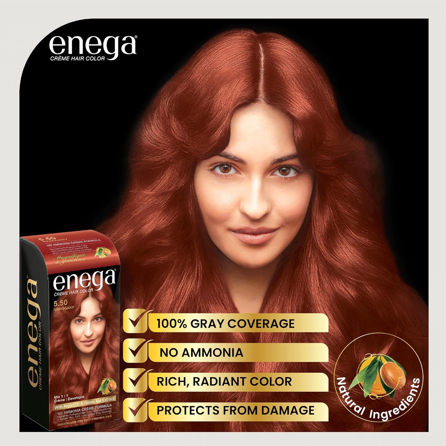Enega No Ammonia Grey Coverage Long Lasting Creme Hair Color with Argan Oil & Green Tea Extract - Pack of 1(150 ML) (Golden Blonde)