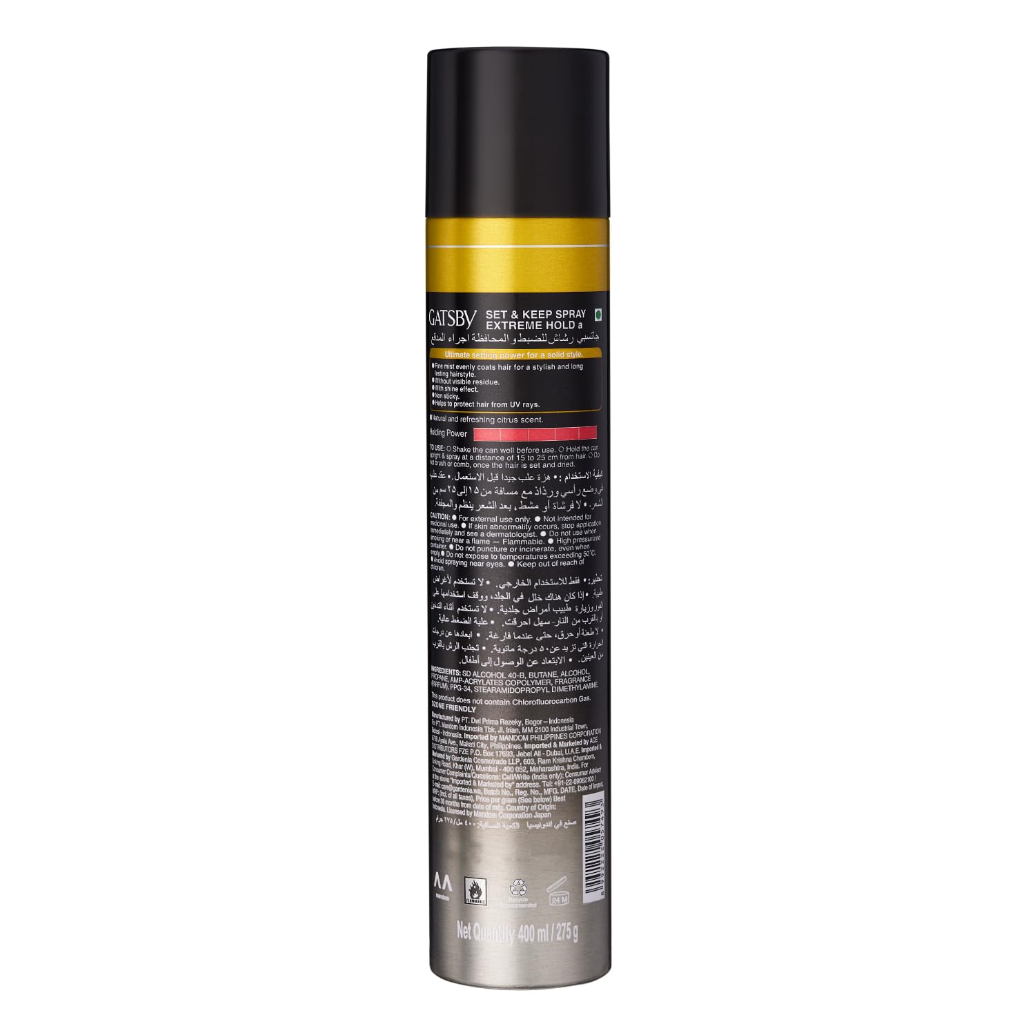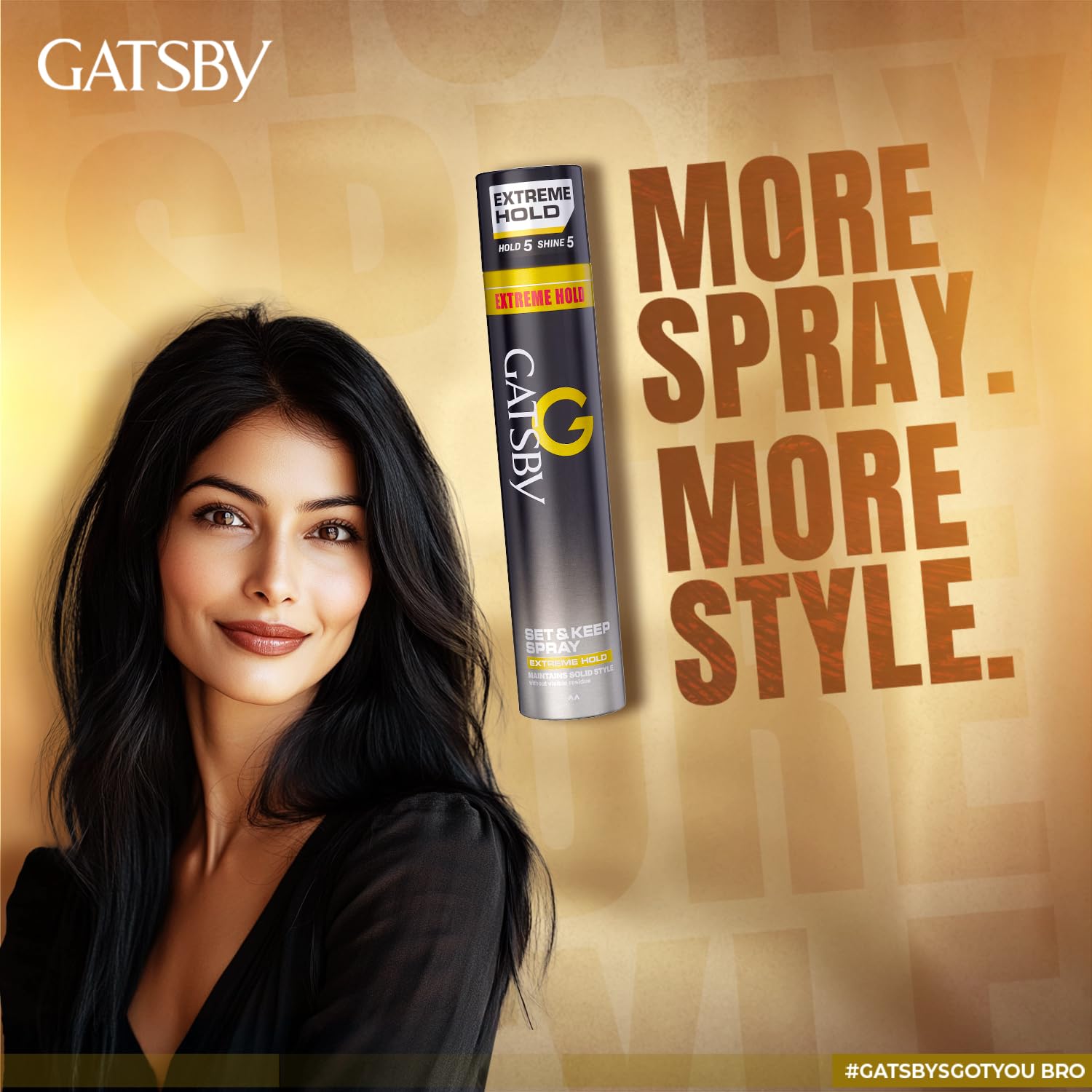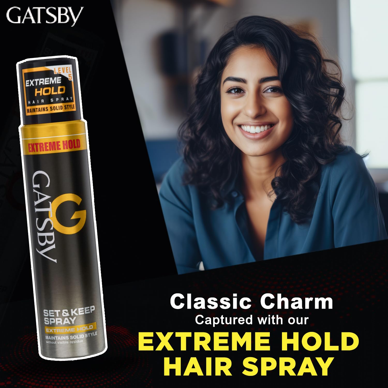Gatsby Set & Keep Hair Spray - Extreme Hold | Quick Drying, Long Lasting Hold, No Flaking & Natural Shine | Non Sticky & Easy Wash Off | Styling Hair Spray | 250ml