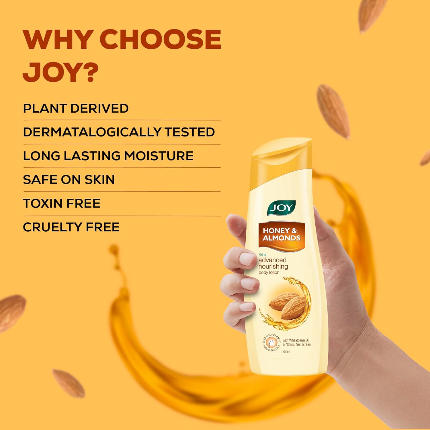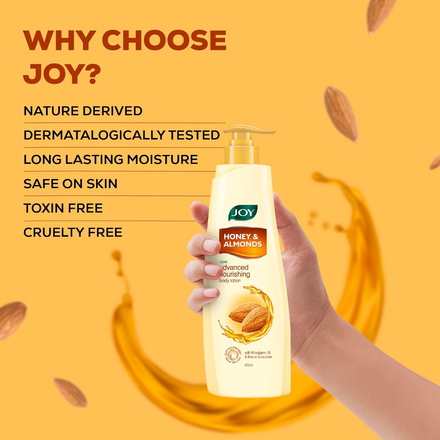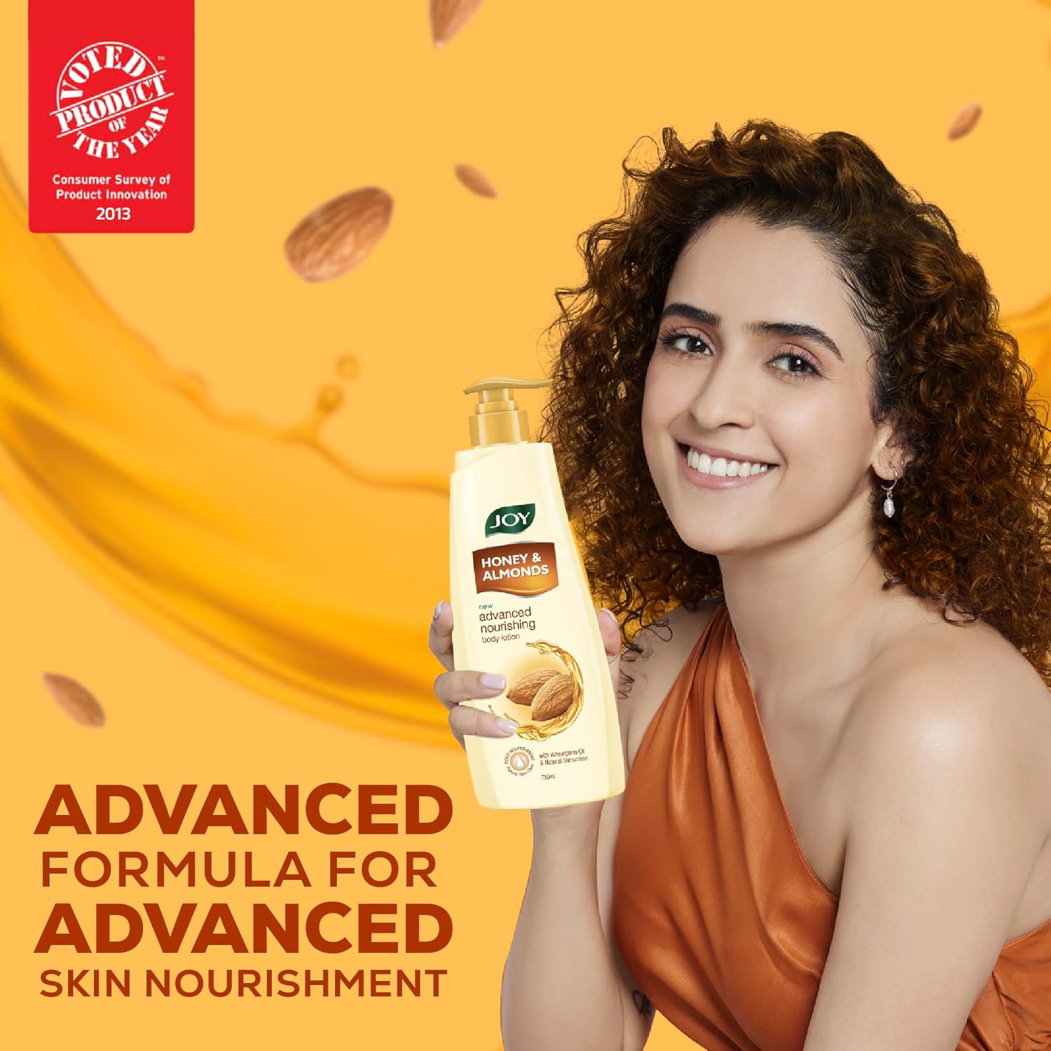 Joy Honey & Almonds Advanced Nourishing Lightweight Body Lotion 750ml | Enriched With Shea Butter | Summer Lotion With Natural Sunscreen Filters | Suitable for Normal to Dry Skin