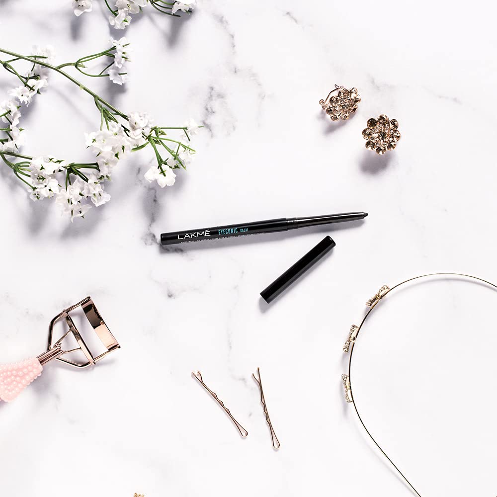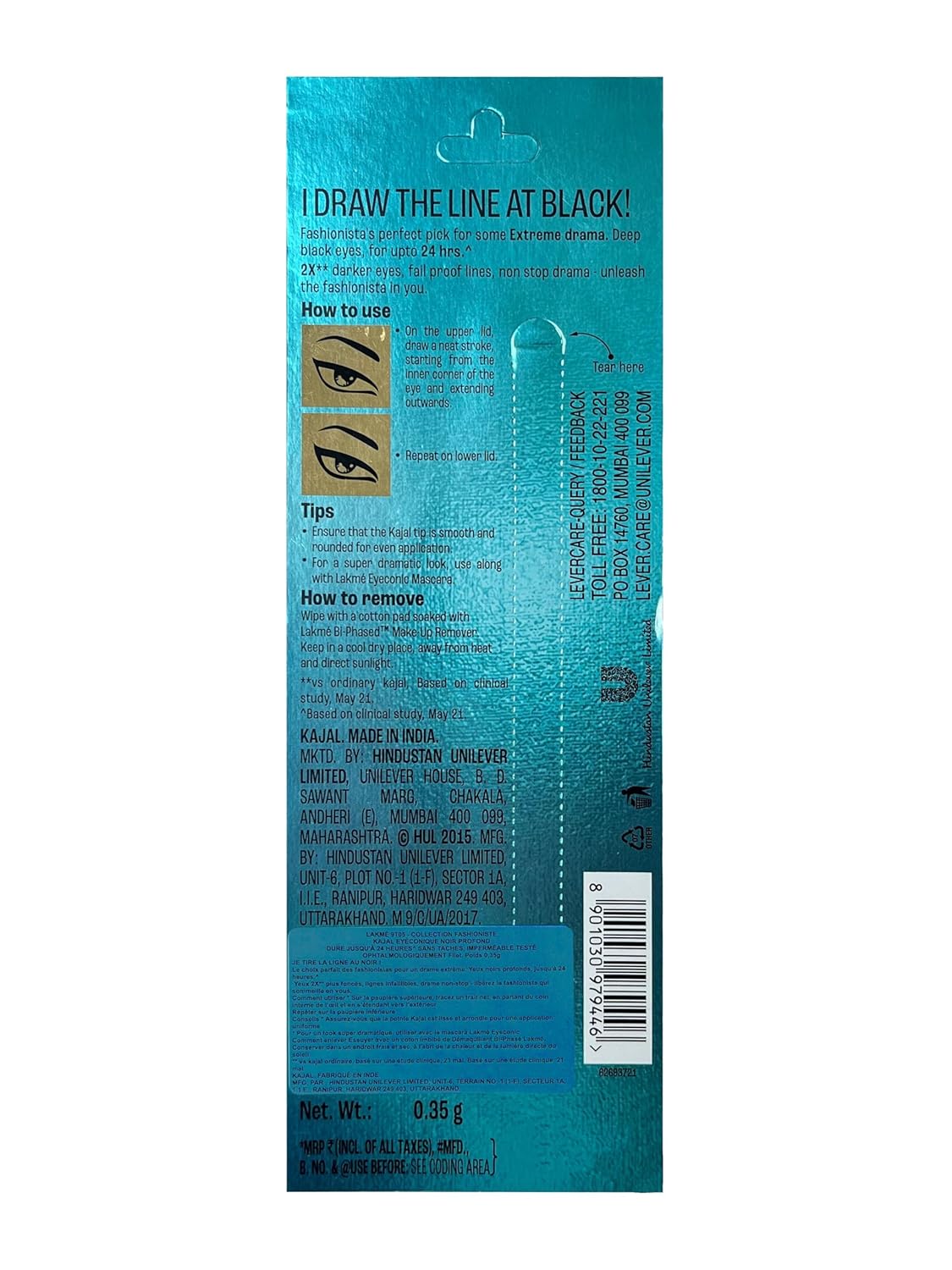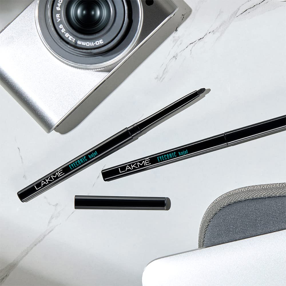 When you talk about intense|| deep black looking eyes|| only one Kajal will come to mind. The Lakmé Eyeconic Kajal. And why not|| because this Kajal not only accentuates your eyes|| but also keeps them mesmerizing for 24 hours straight. It's ophthalmologically tested and contains natural ingredients which make your eyes outlast the day. Lakmé Eyeconic Kajal has a new and improved formula that lets your eyes make eyeconic statements all the time. So|| you can attend those long meetings|| without letting the kajal smudge. It’s also transfer-proof|| so you can change your make-up for the after party and even enhance your already applied kajal|| to make it look bolder and more beautiful. And it doesn’t stop here|| Lakmé Eyeconic Kajal is also water-proof – so you can wash your face or enjoy that emotional movie with your eyes still looking intensely black. On the other hand|| Lakmé Eyeconic Kajal is also easy to remove whenever you want. That’s why the Lakmé Eyeconic Kajal is a must have|| as it’s extremely convenient to carry and it’s easy one stroke application enhances your eyes giving you a perfect deep black. It also dries up quickly|| so you have more time to experiment with your eyes. You can even apply the kajal on the upper eye lid for more intense looking deep black eyes and complete your look with the Lakmé Eyeconic Eyeliner and Volume Mascara. *OLD