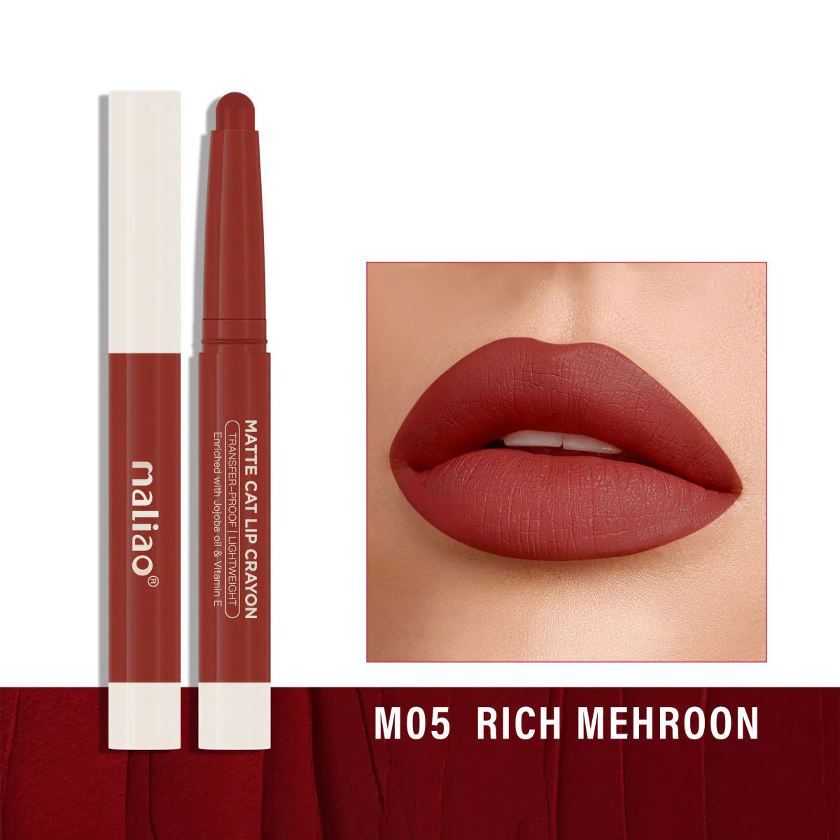 Maliao Matte Cat Lip Crayon - Transfer-Proof & Lightweight Long-Lasting Color