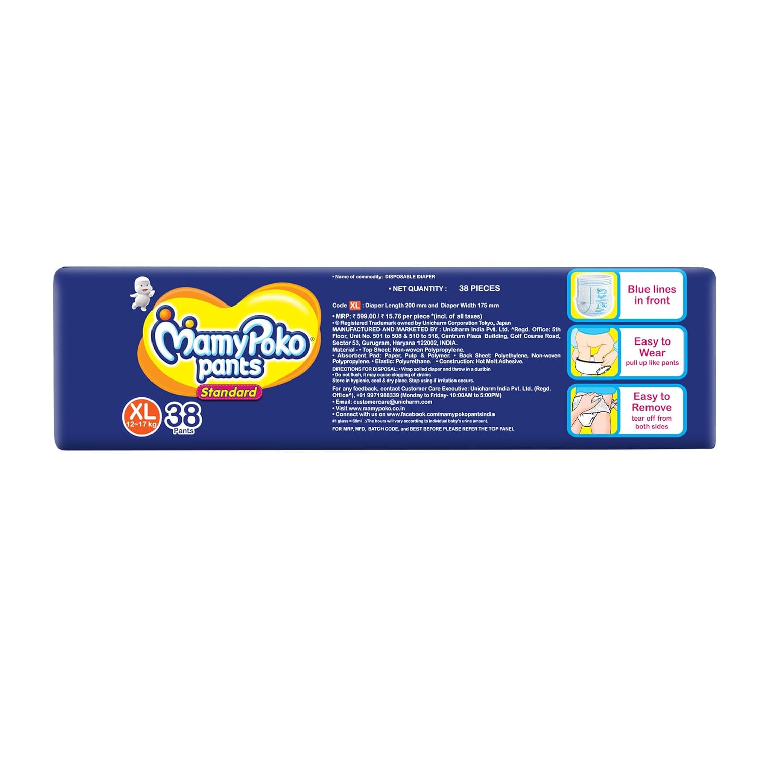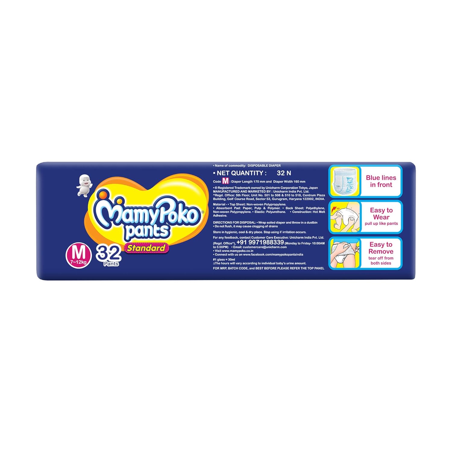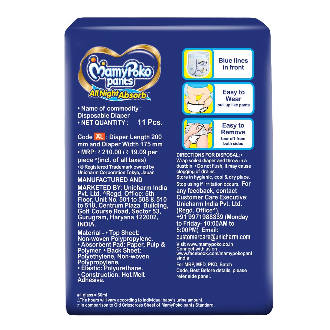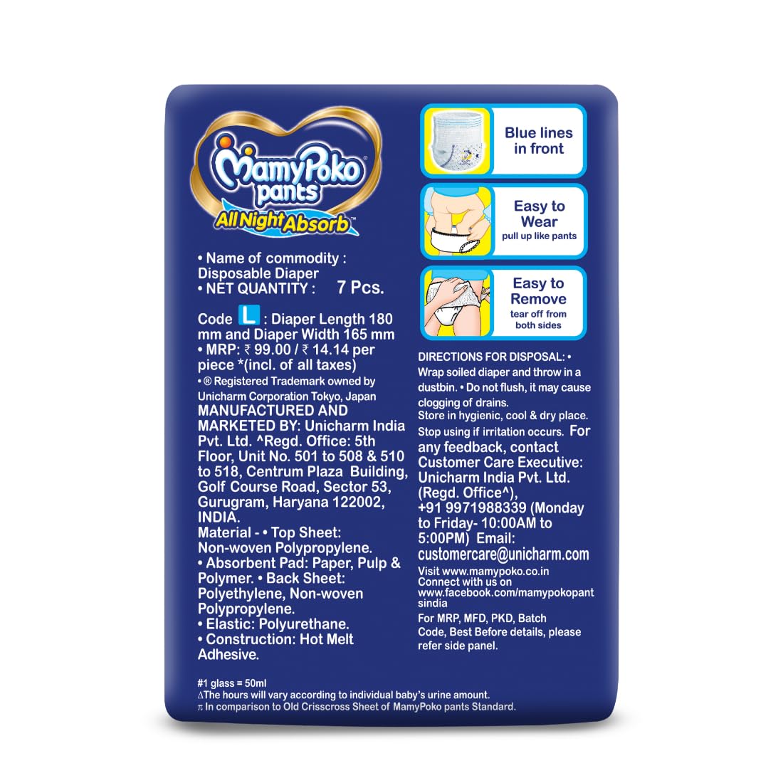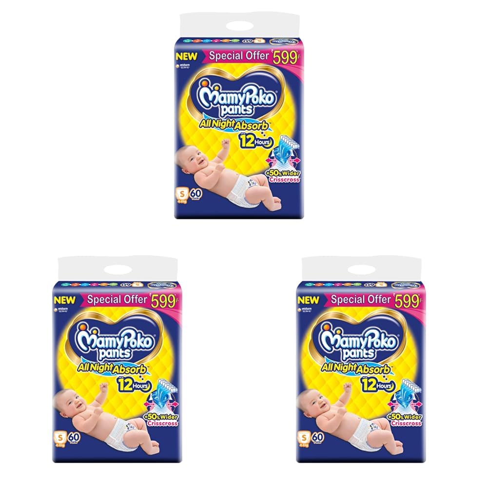 MamyPoko Pants All Night Absorb has +50% Widespread Crisscross absorption that absorb Widely & repeatedly for up to 12Hrs thus preventing leakage from heaviness.