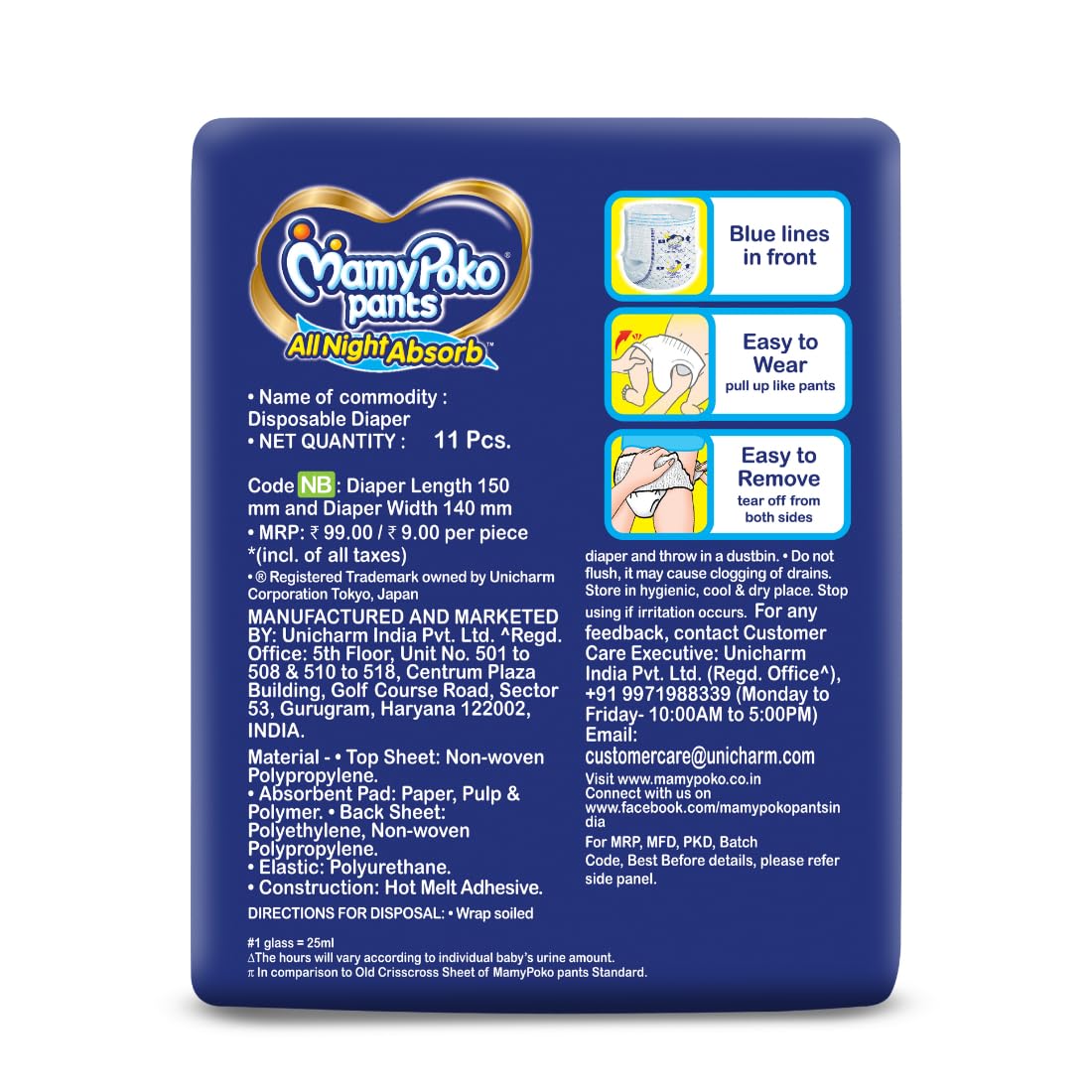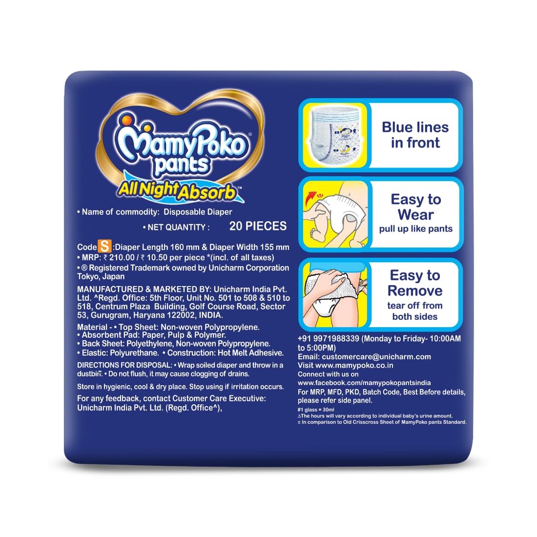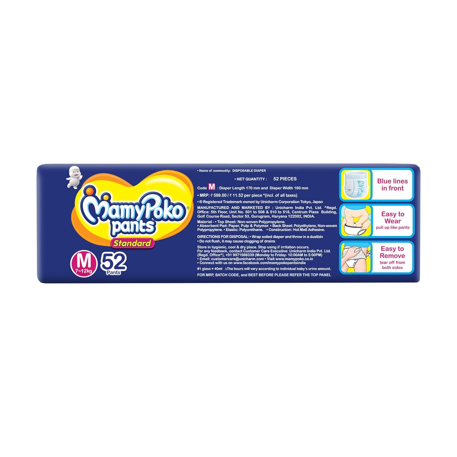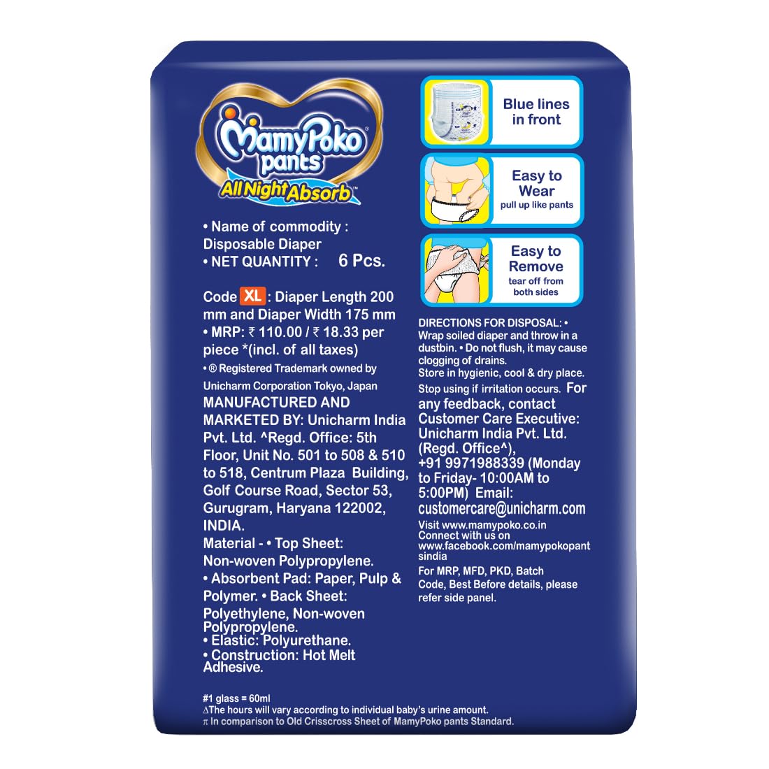 MamyPoko Pants All Night Absorb has +50% Widespread Crisscross absorption that absorb Widely & repeatedly for up to 12Hrs thus preventing leakage from heaviness.