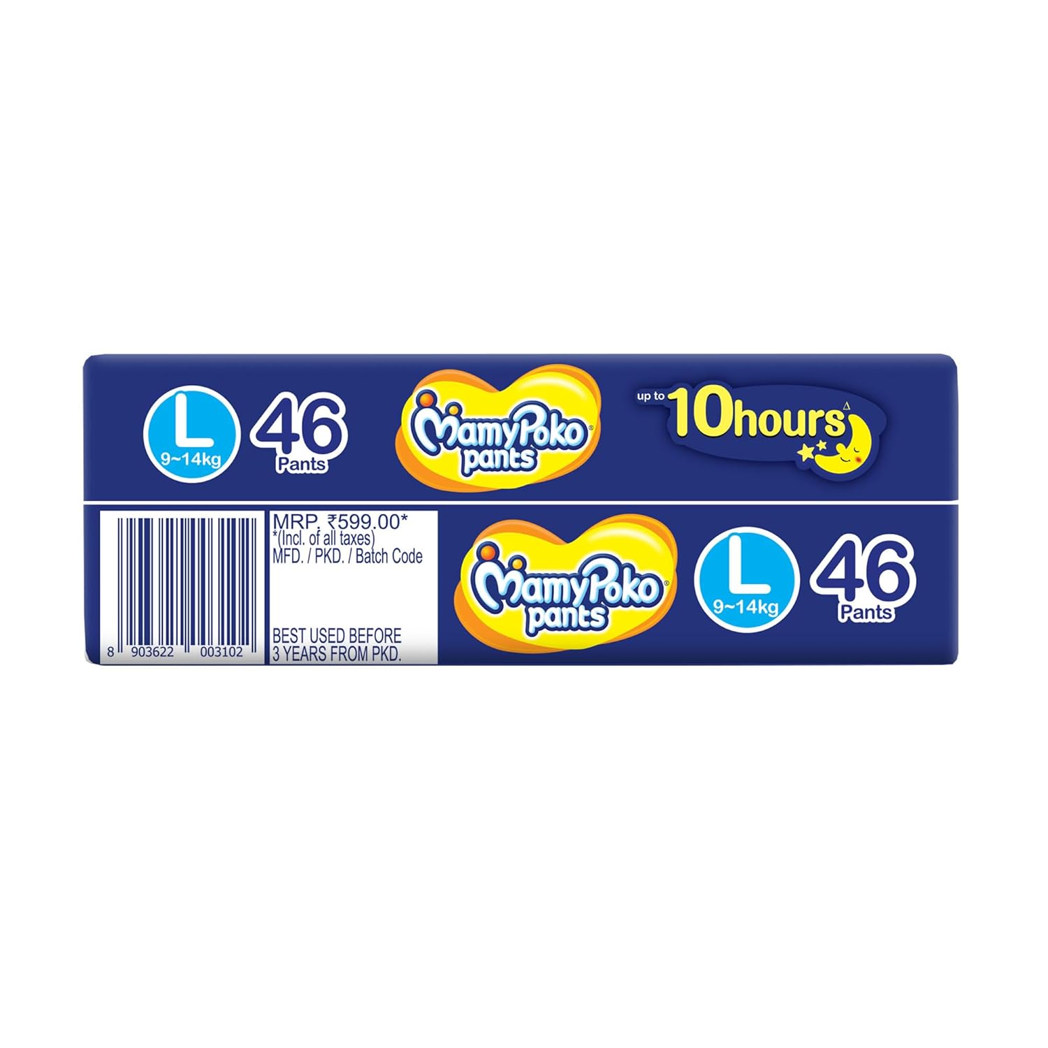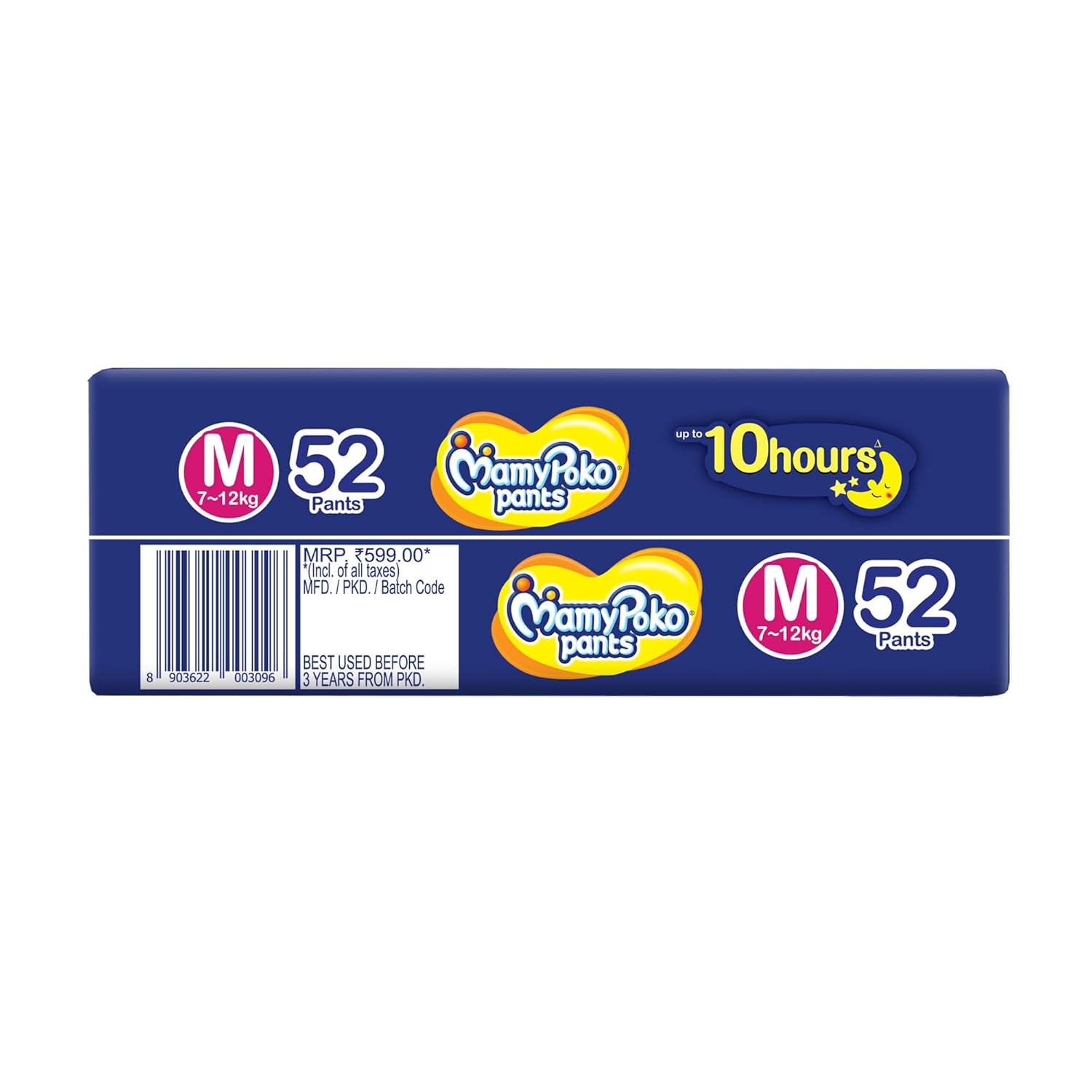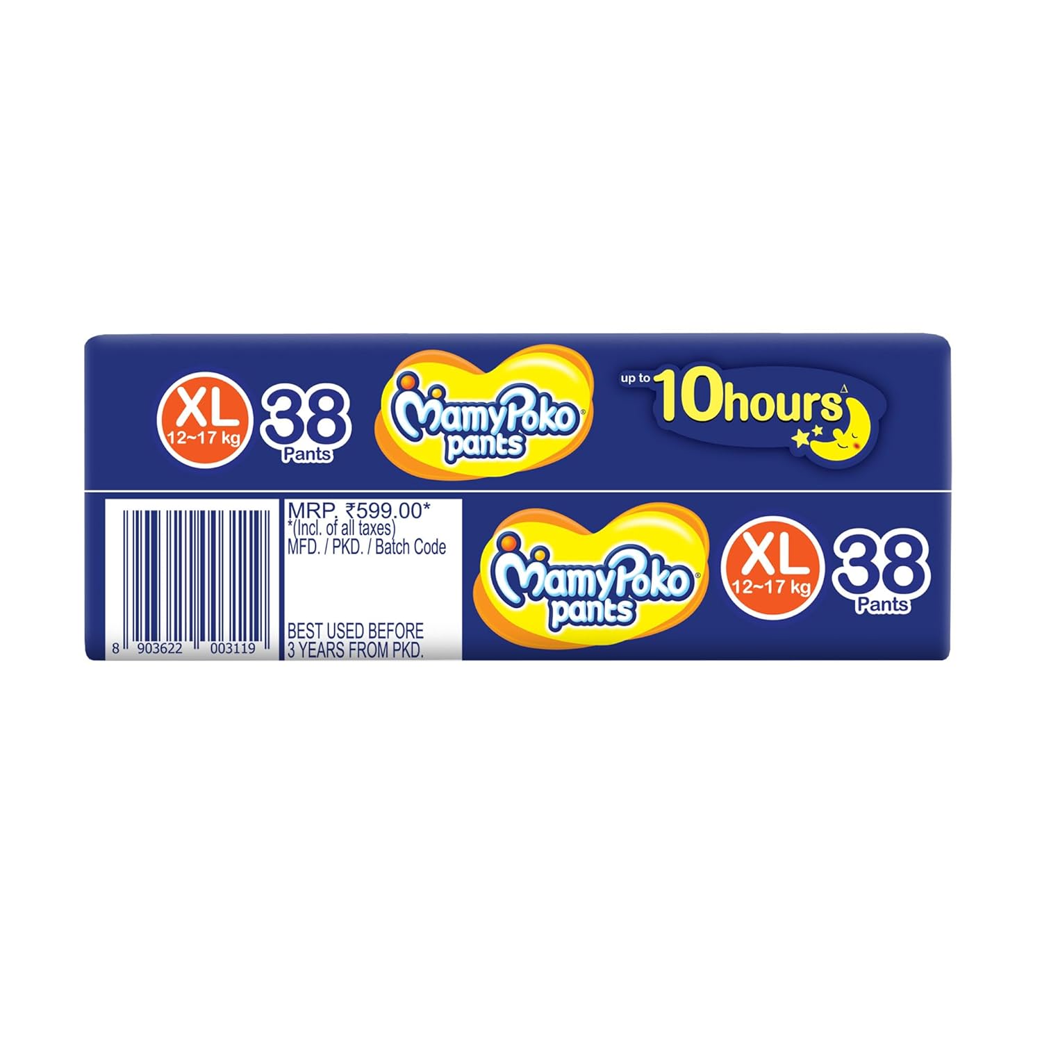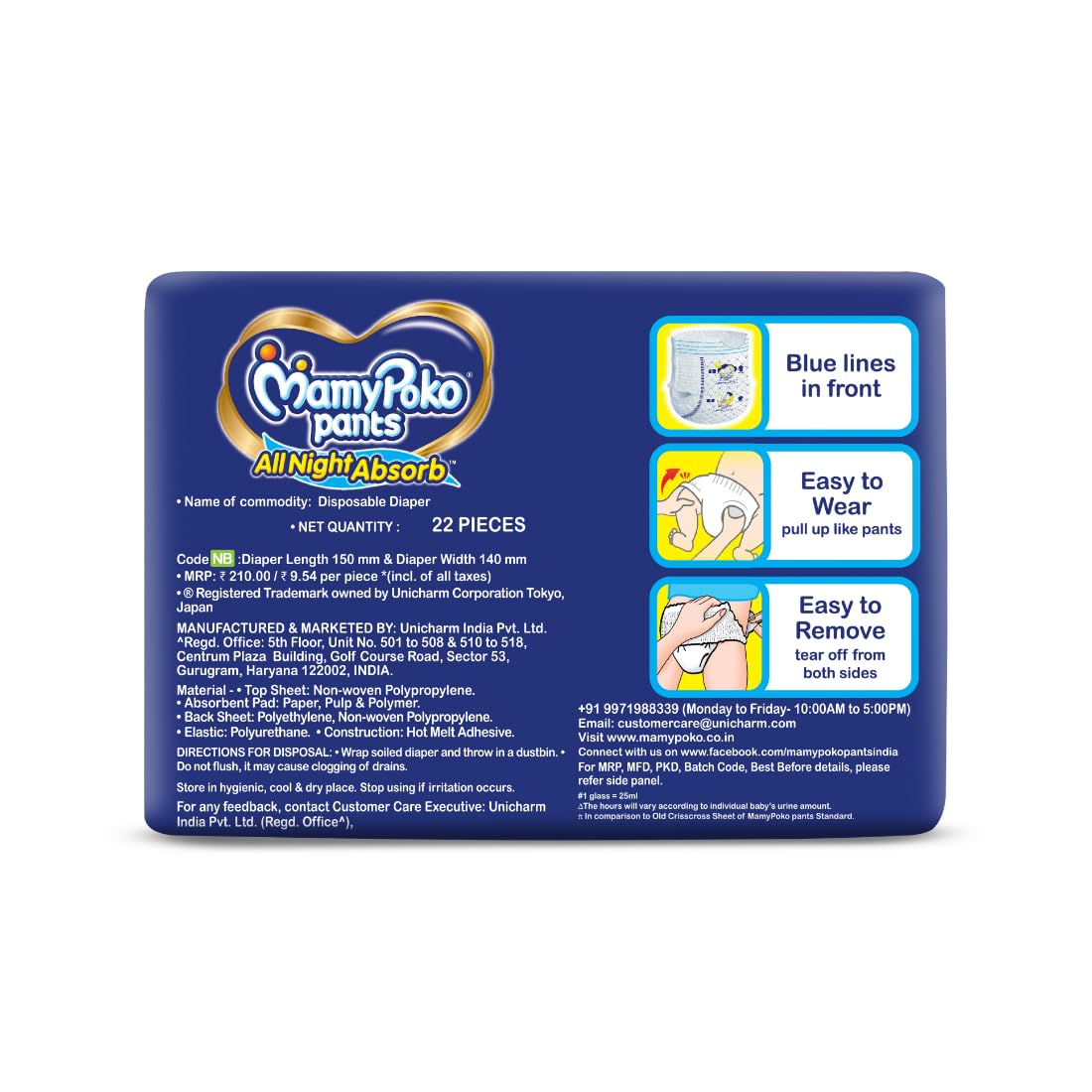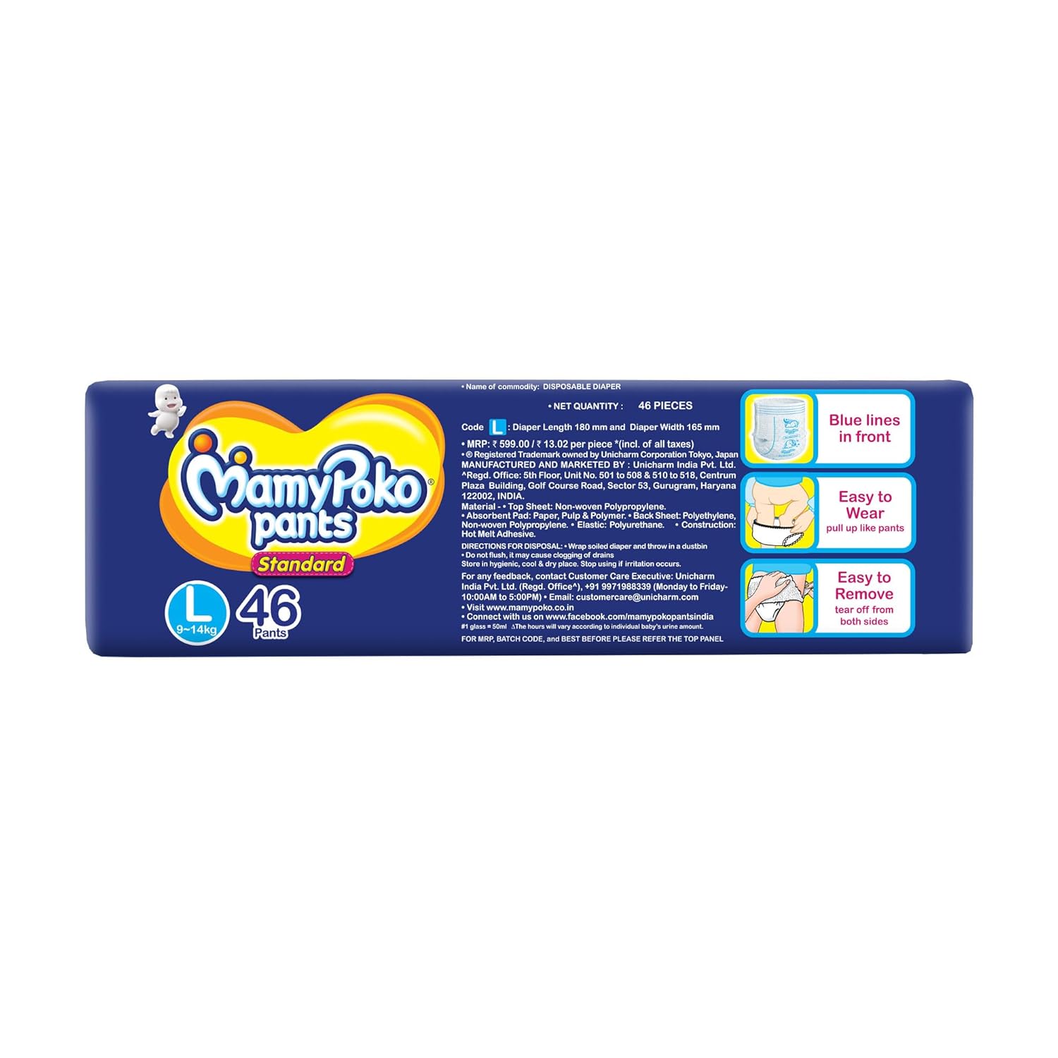MamyPoko Pants All Night Absorb has +50% Widespread Crisscross absorption that absorb Widely & repeatedly for up to 12Hrs thus preventing leakage from heaviness.