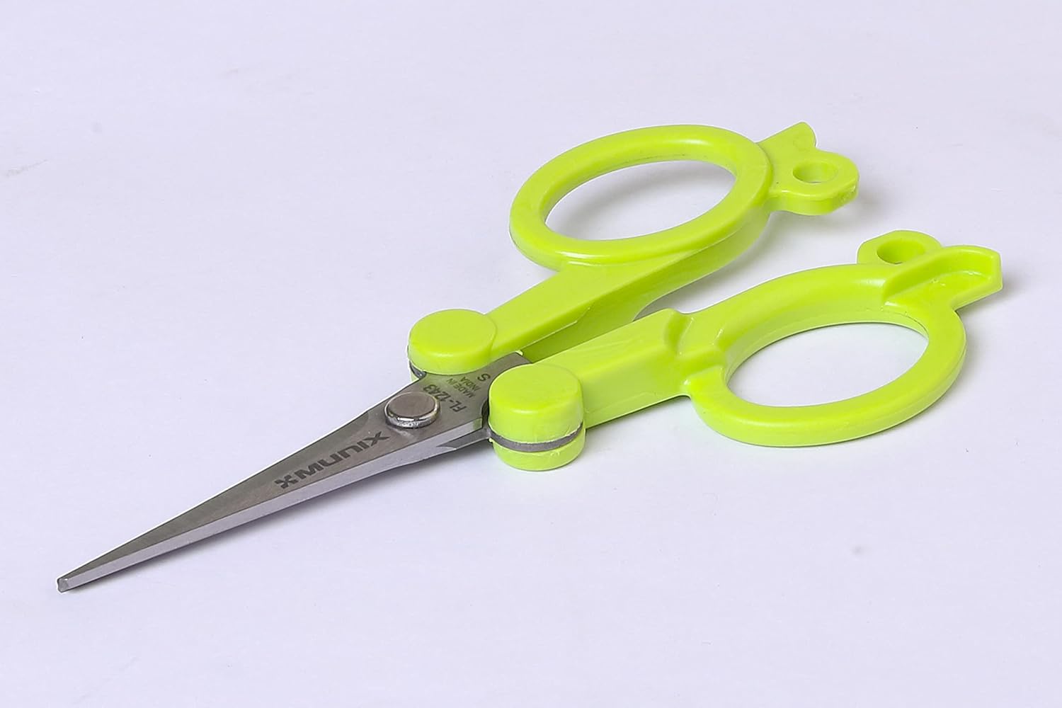 Munix FL-1243 112 mm / 4.5" Stainless Steel Foldable Scissors | Pointed Tip Blade with Lock Mechanism | Asymmetrical Handles for Easy Grip | Green, Pack of 1- Color May Vary