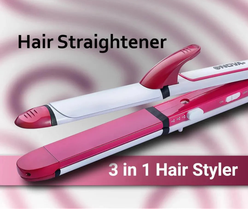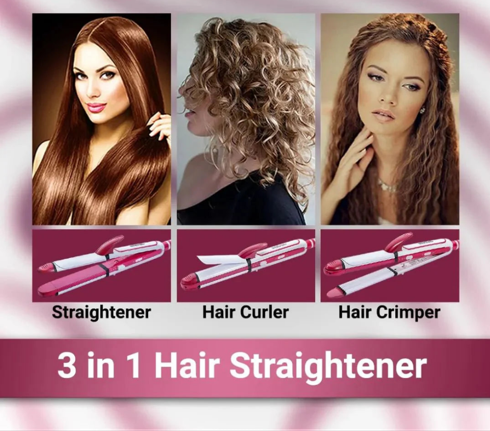 With the Shinone 3-in-1 SH 8088 Hair Straightener, look glamorous in straight, curly, or crimped hair every time you step out of your home. This hairstyling appliance features Ceramic-coated Plates, Crimper Plates, and a 360° Swivel Cord to effortlessly style your hair the way you want.