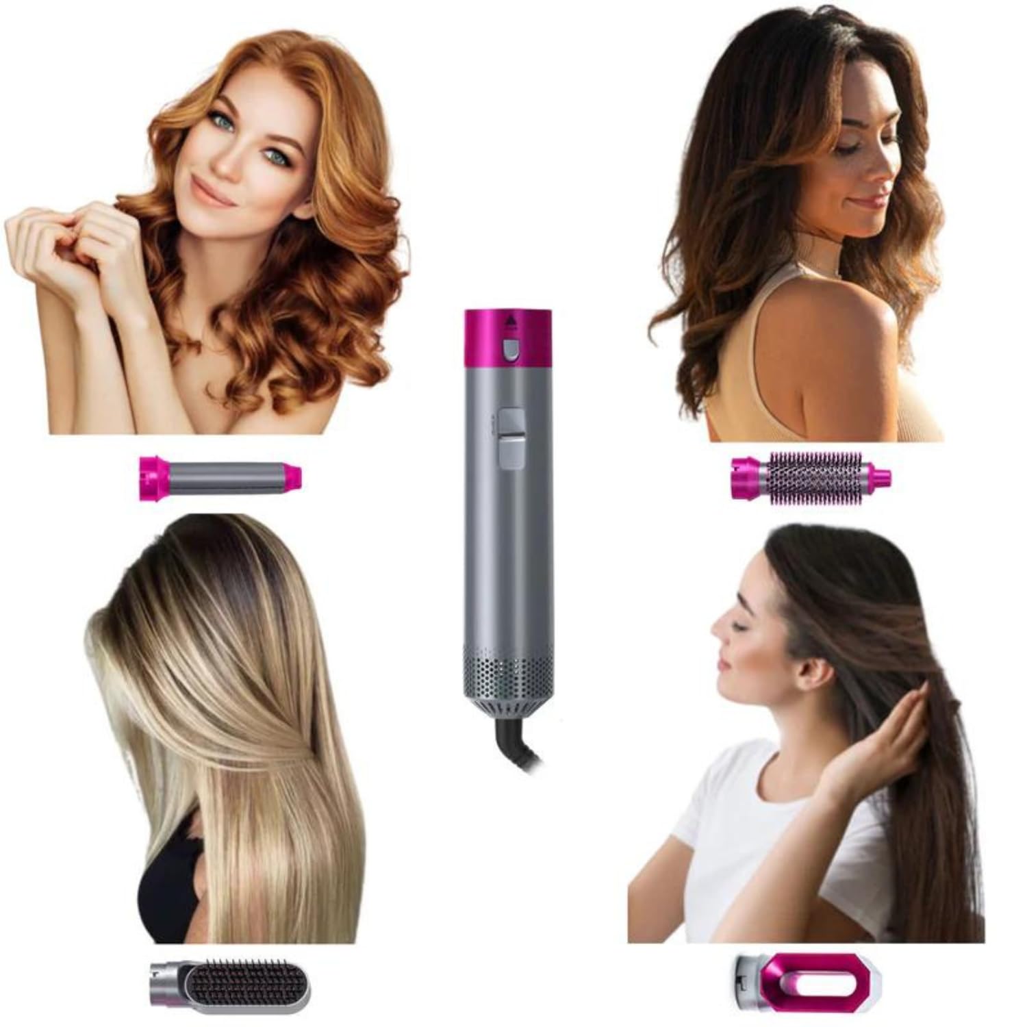 5 In 1 Hair Styler For Women Multifunctional Styling Tool With 5 Attachments 1 Hot Air Brush,2 Spiral Curler,1 Hair Dryer,1 Hair Straightner Comb,1 Year Warranty,1000 Watt,3 Heat Settings