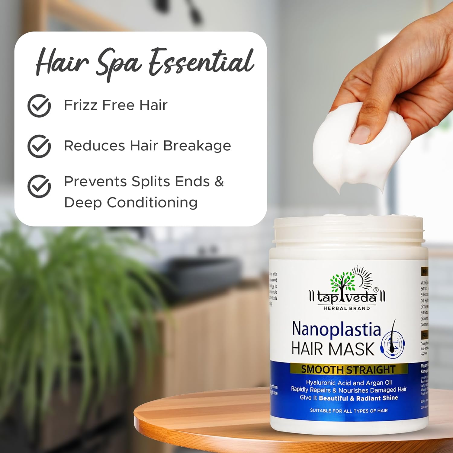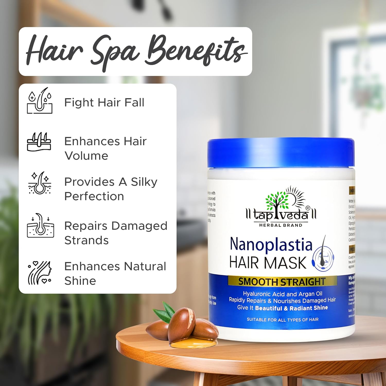 Tapveda Nanoplastia Hair Mask 1000ml | With Hyaluronic Acid & Argan Oil | Deep Repair & Smooth Hair Spa | For Dry, Damaged and Dull Hair | No Paraben, No Sulfates