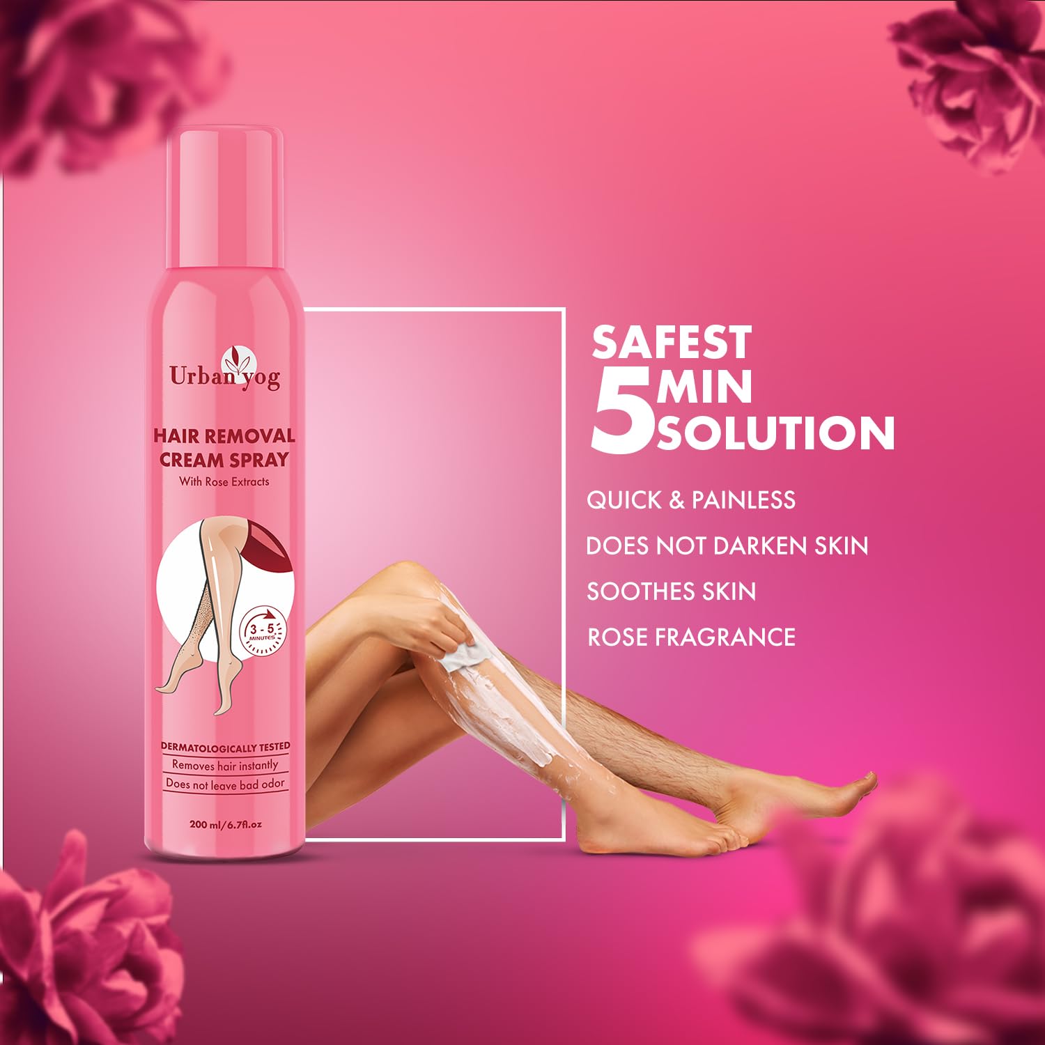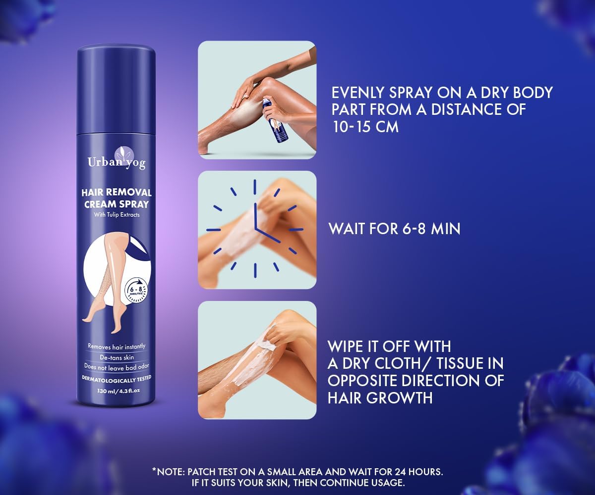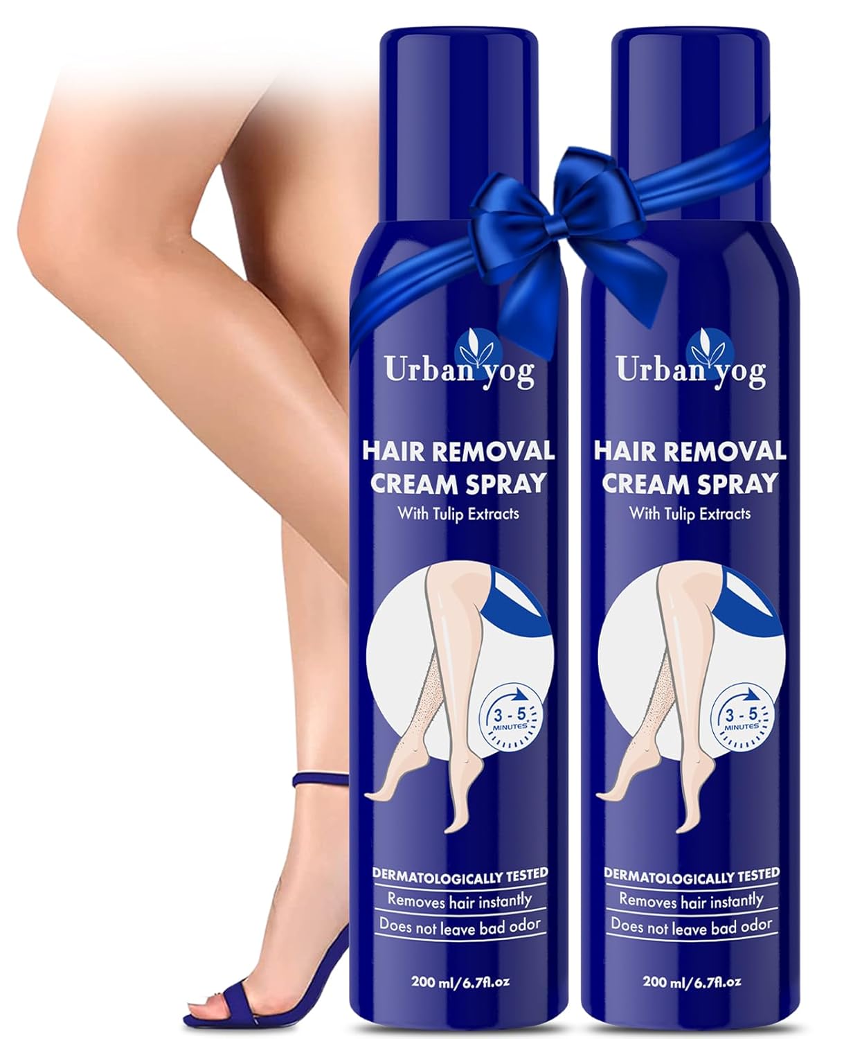 Urban yog Hair Removal Cream Spray for Women | Painless Body Hair Removal Spray for legs, hands, underarm & back (200 ML, Tulip (Blue))