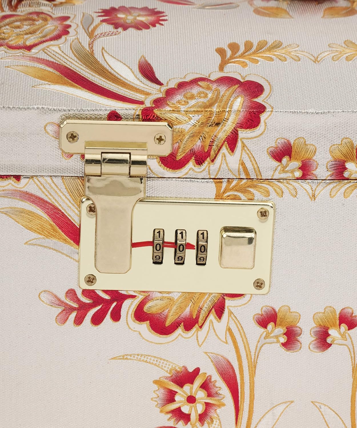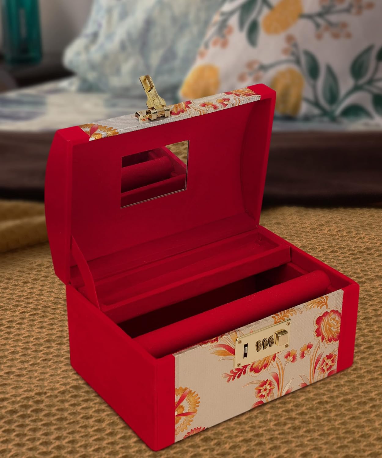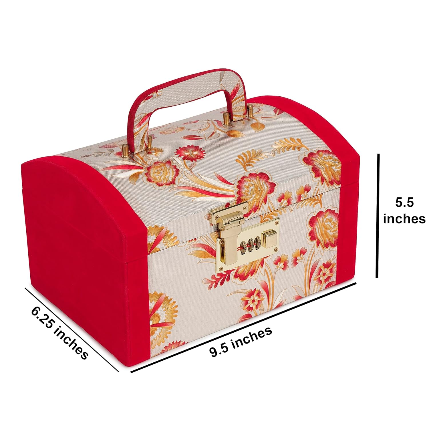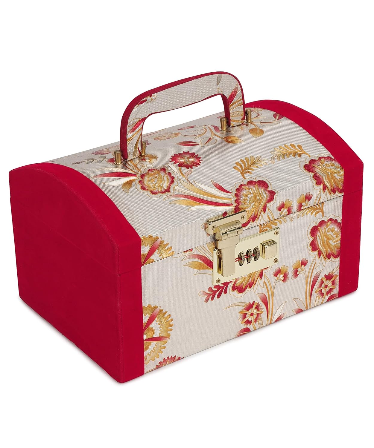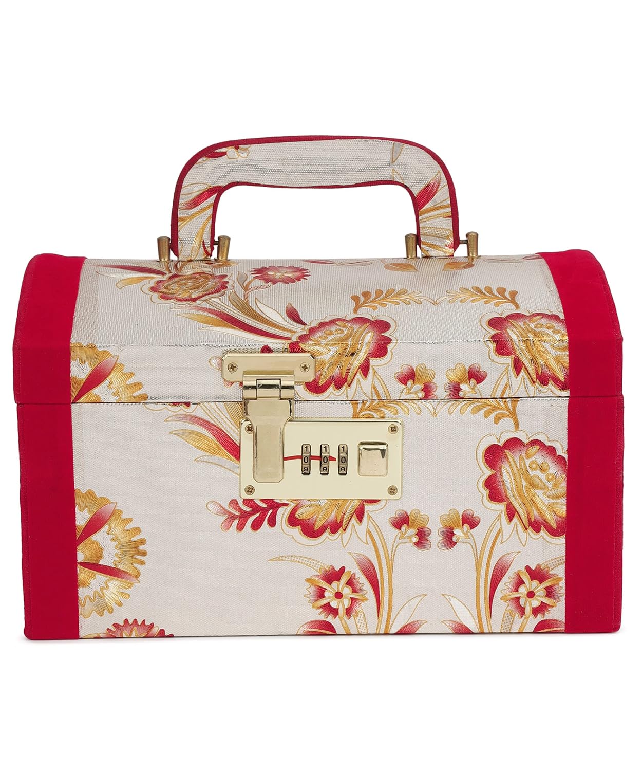 Bangle box is made of good quality material so, this is very durable, long-lasting and very useful. This has an attractive and elegant look and has a different print design which increases the beauty of this bangle box. This is used to organize your bangles systematically and protect them from breakage so, keep delicate your bangles safely. This is enough to keep your bangles and all your needs. Perfect for storing make-up, jewellery, bangles, cosmetics and toiletries with Its robust design and easy-grip carry handle. Faux maroon suede Interior for a luxury finish with a number lock to keep your items safe and secure. A stunning vanity case crafted beautifully for professionals and perfect for home use. This gorgeous cosmetics/jewelry case is made from Designer Cloth which guarantees durability.